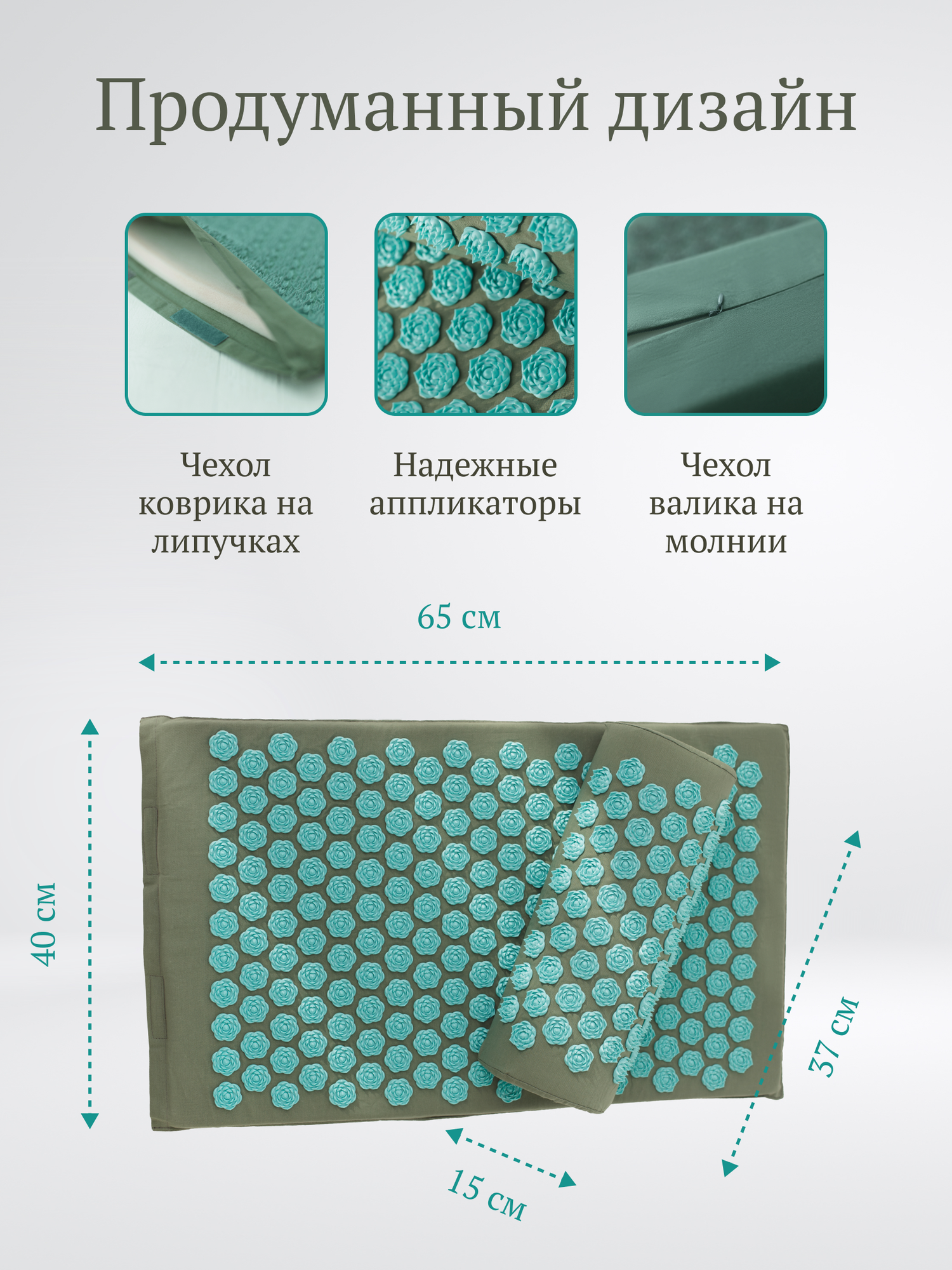 Аппликатор Кузнецова, акупунктурный массажный коврик 65х40 см. / Комплект из 3 предметов:коврик, подушка, сумка интересное: