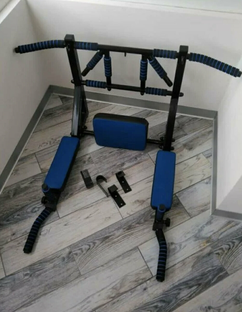 Турник 3в1 Мультихват Premium настенный разборный (цвет: черно-синий) + Упоры для отжиманий интересное: