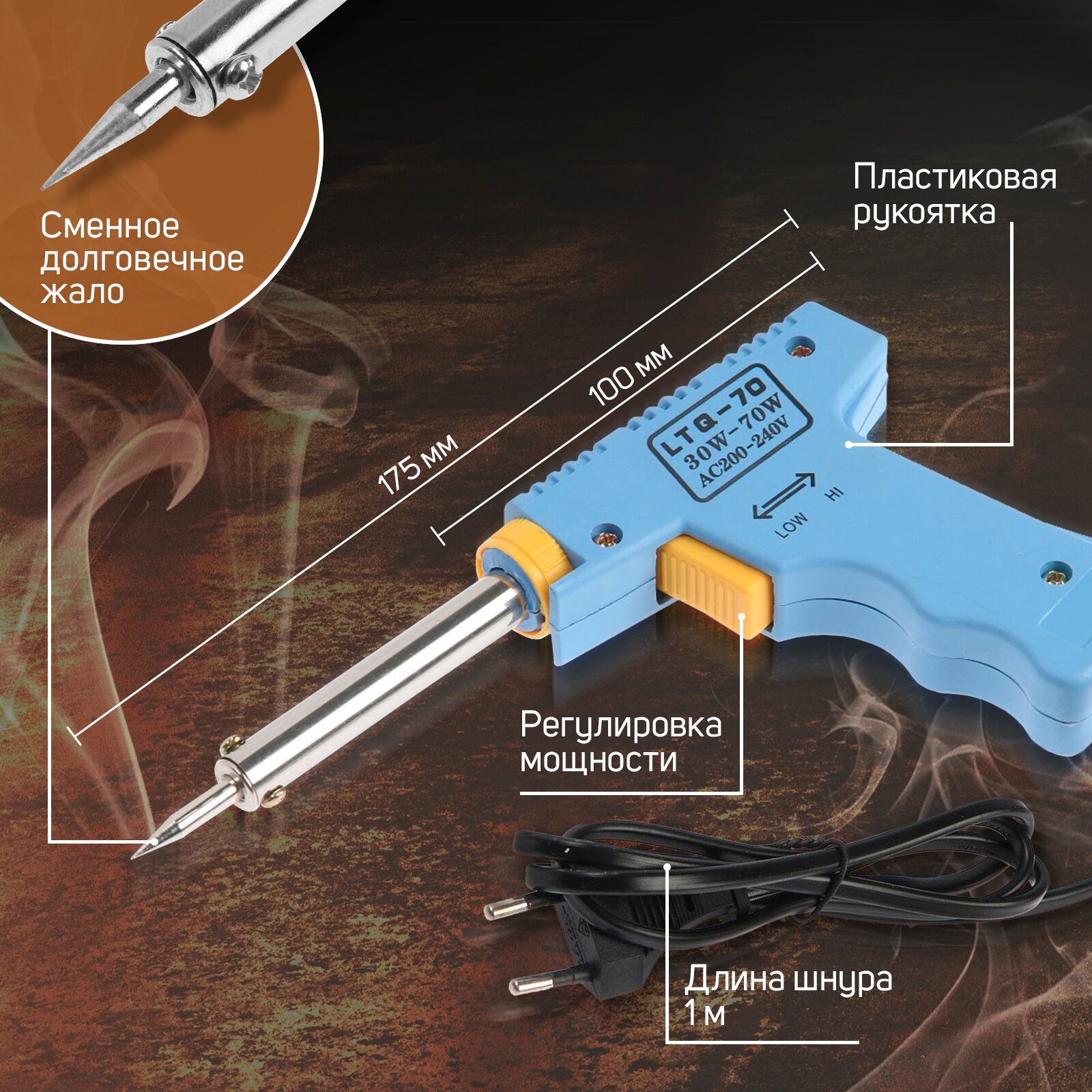 Паяльник-пистолет с регулировкой мощности, 30-70Вт, 220 В интересное: