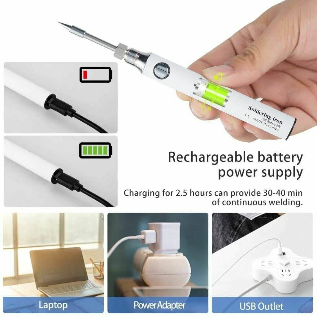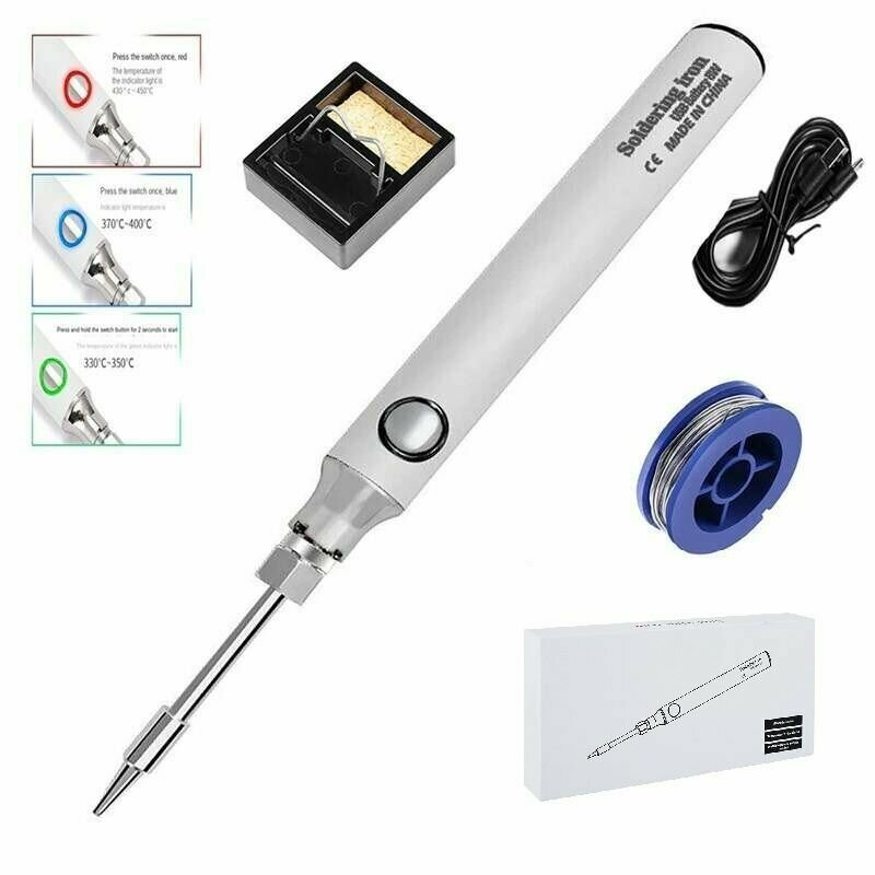 Беспроводной аккумуляторный паяльник с зарядкой от USB, электрический без провода с регулировкой температуры до 450 градусов, Белый интересное:
