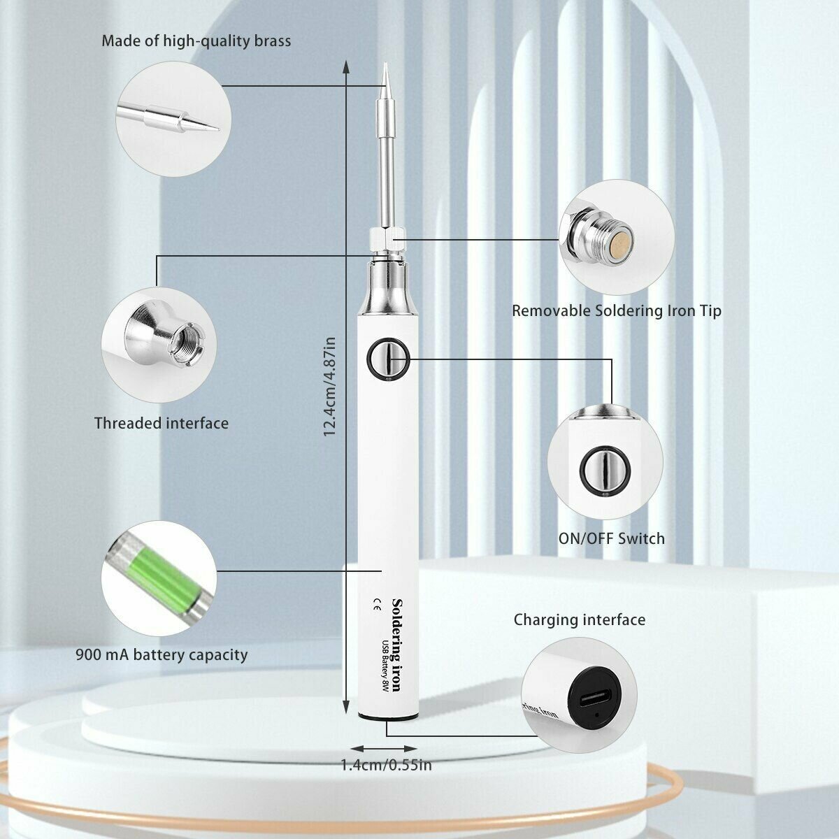 Купить Беспроводной аккумуляторный паяльник с зарядкой от USB, электрический без провода с регулировкой температуры до 450 градусов, Белый