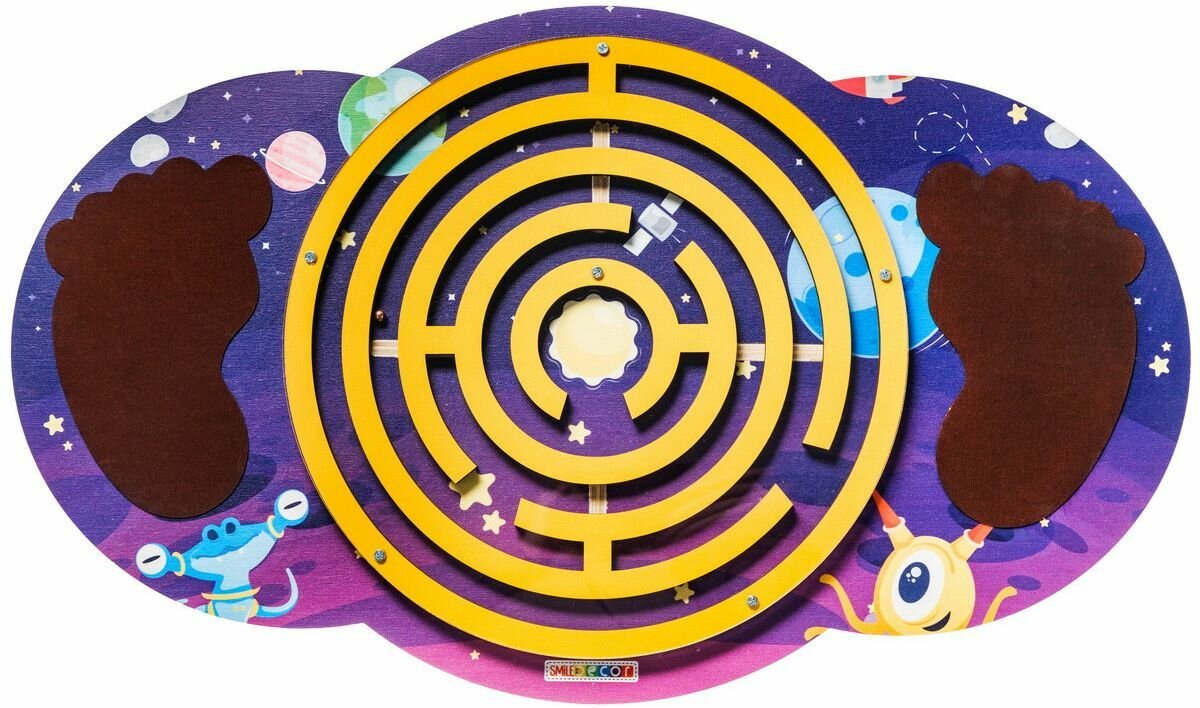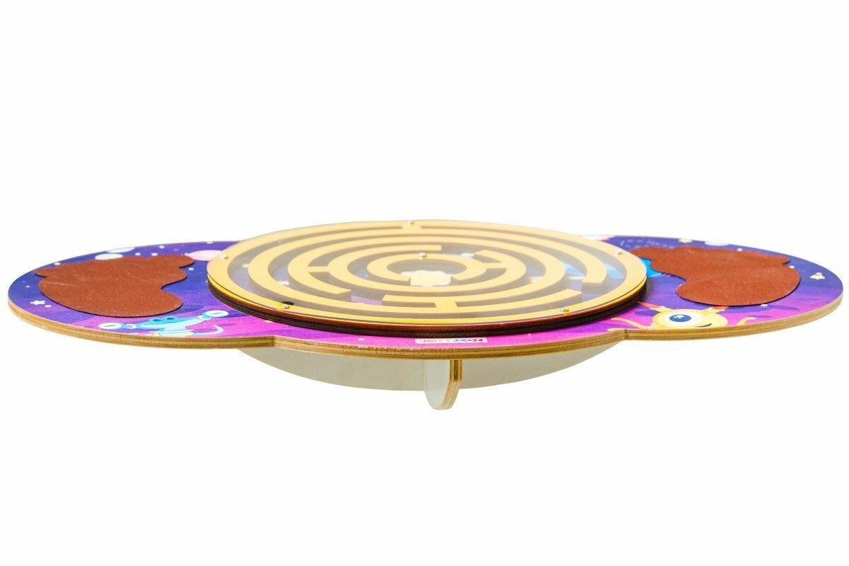 Купить Деревянный детский балансир Smile Decor "Космос" с лабиринтом, балансборд для детей, доска-нейротренажер для ног