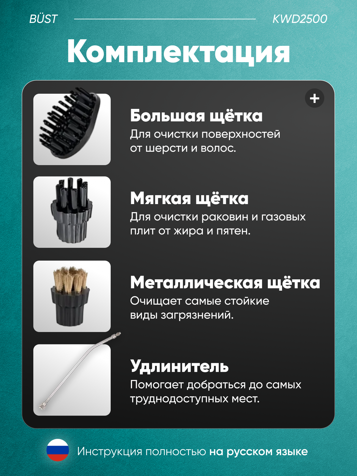 | В комплекте | насадка-щетка, угловая насадка |
