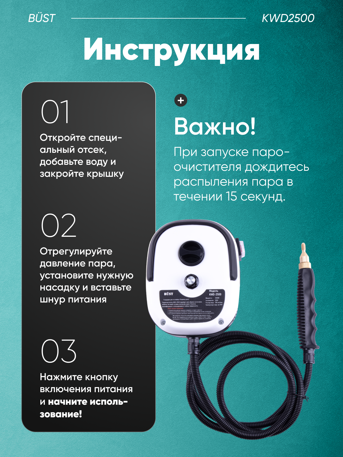 Профессиональный пароочиститель высокого давления SteamCleaner 2500 Вт 3 Бар интересное: