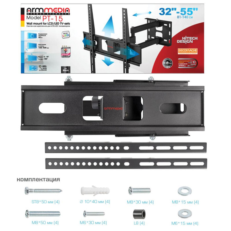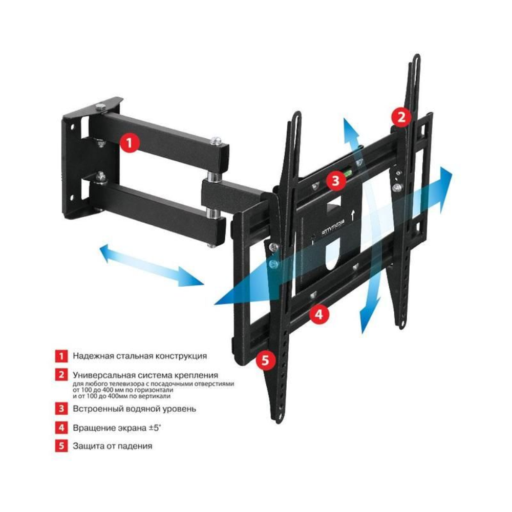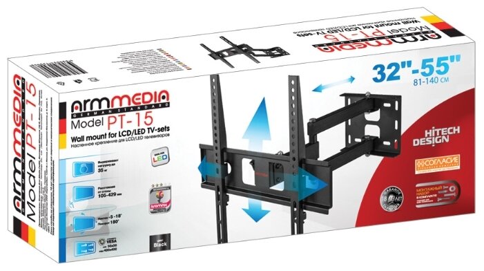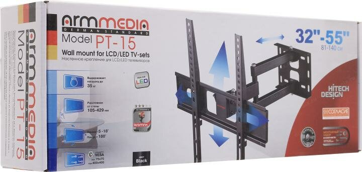 Кронштейн Arm Media PT-15, TV 32-55, настенный, наклонно-поворотный, чер