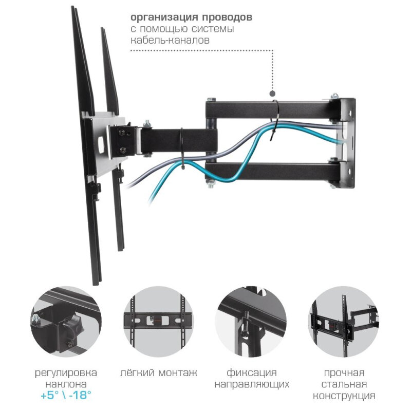 Кронштейн для телевизора Arm Media PT-15 NEW, 32-55", настенный, поворотно-выдвижной и наклонный, черный [10197]