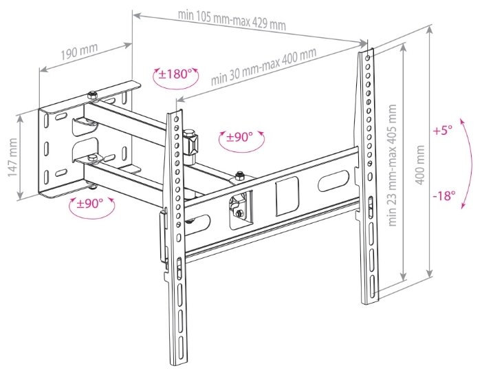 | Плюсы: | Качественный, небольшой отступ от стены, в комплекте все крепления к стене и телевизора, регулировка наклона, недорогой! |