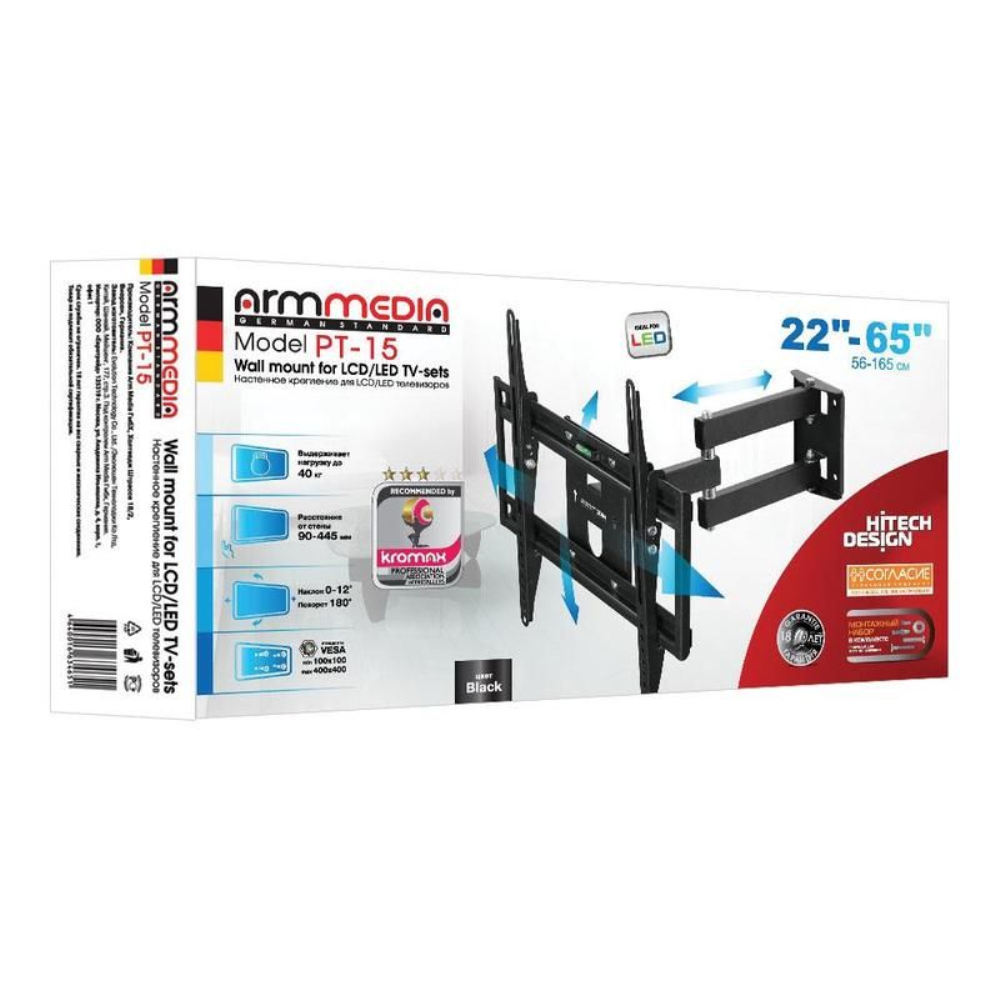 Кронштейн для ТВ ARM MEDIA PT-15 black (max VESA 400x400 мм., настенный, наклонно-поворотный, max 35 кг) (10197)