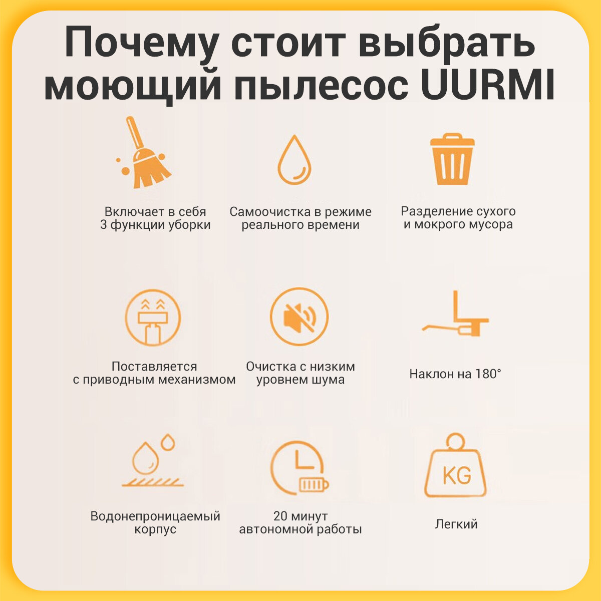 Пылесосы для дома UURMI F18,с влажной уборкой,Самоочистка,Наклон на 180°