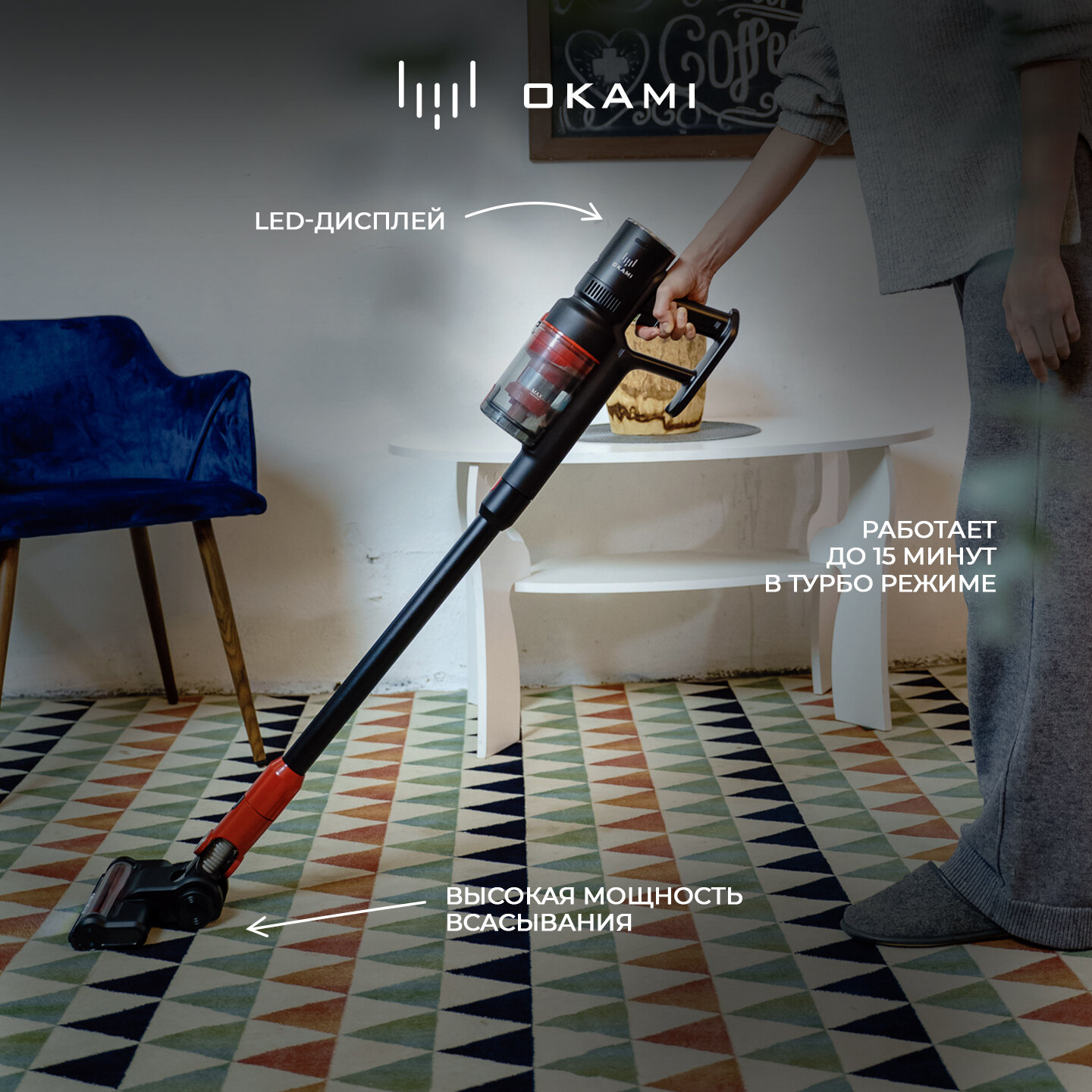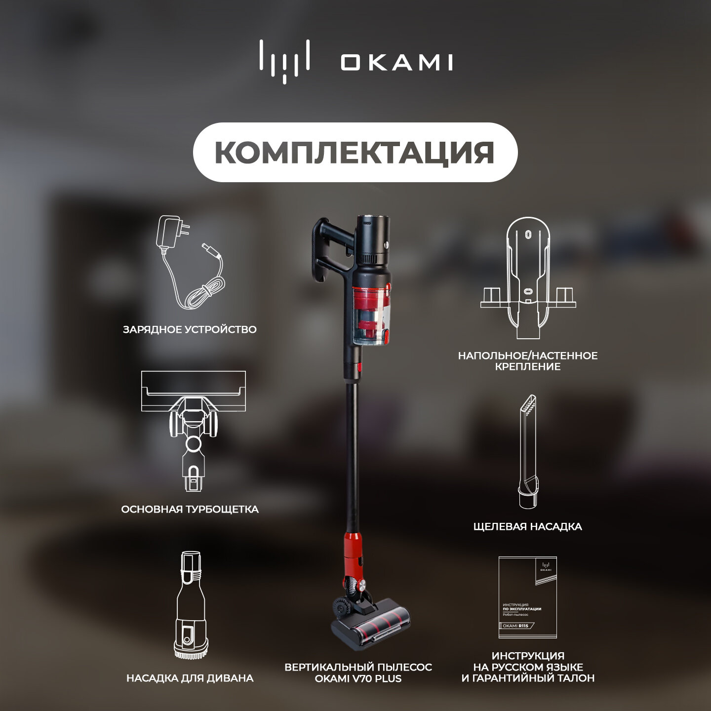 Пылесос вертикальный для дома беспроводной ручной с контейнером Okami V70 Plus интересное: