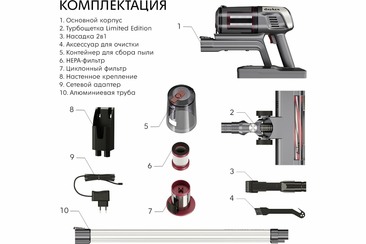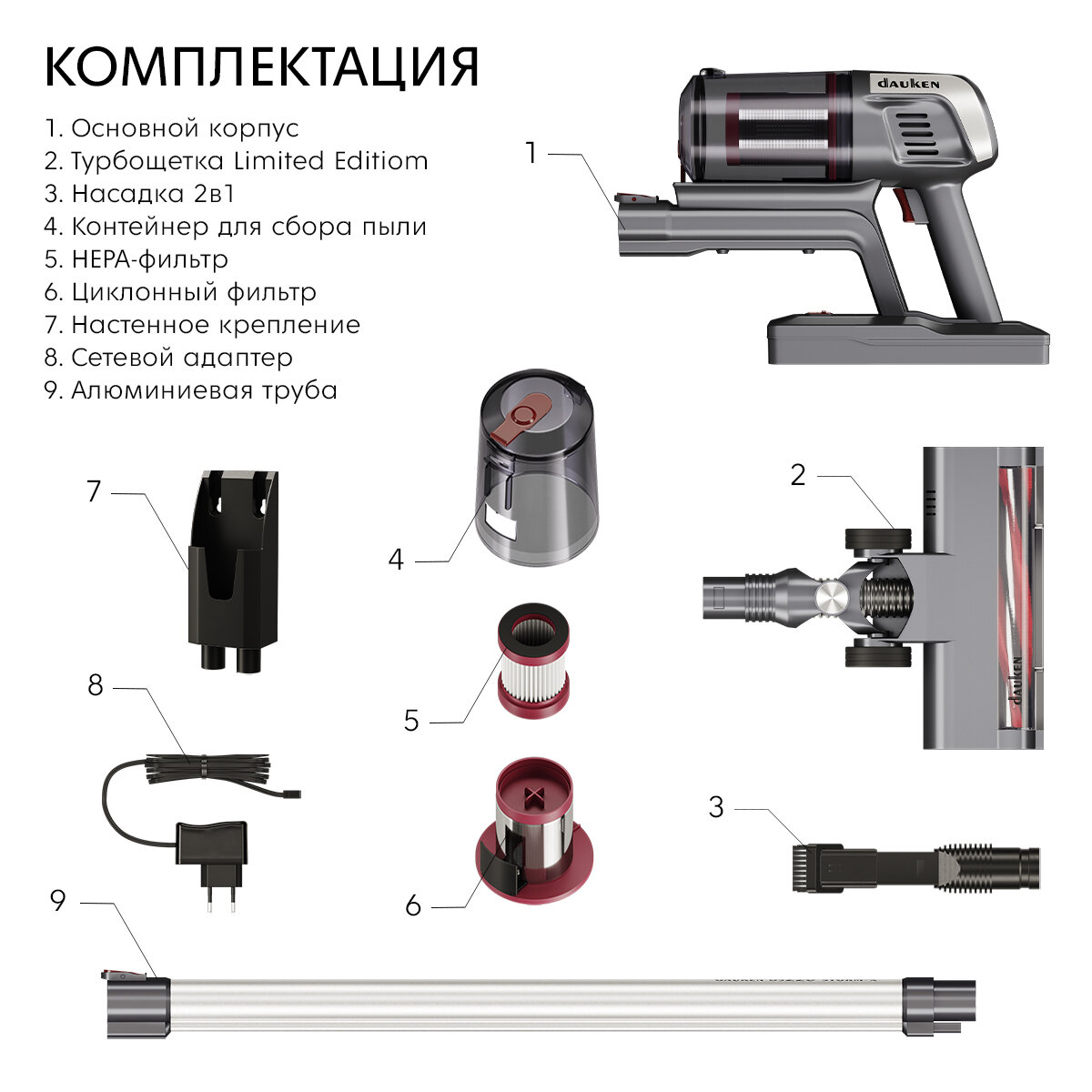 Вертикальный пылесос с подсветкой Dauken BS220 STORM LE беспроводной, аккумуляторный, с насадками для дома интересное: