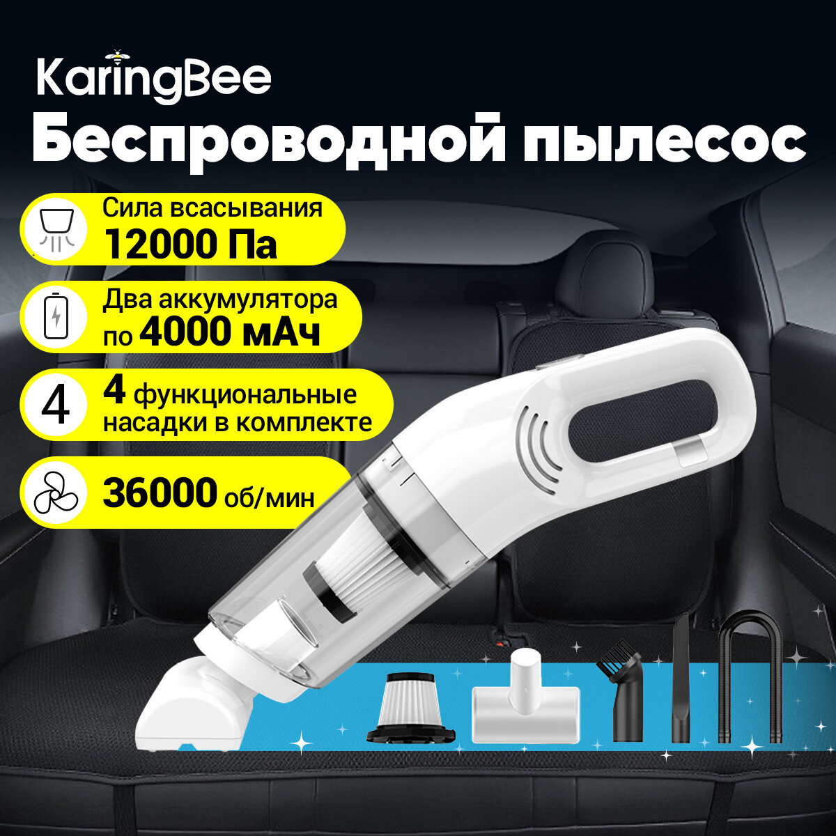 Пылесос для автомобиля беспроводной KaringBee LT-113C интересное: