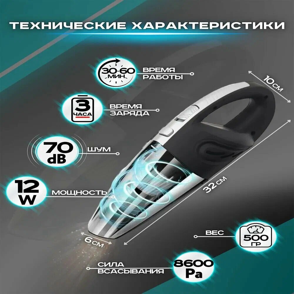 Беспроводной мини пылесос для авто и дома 2в1, чёрный интересное: