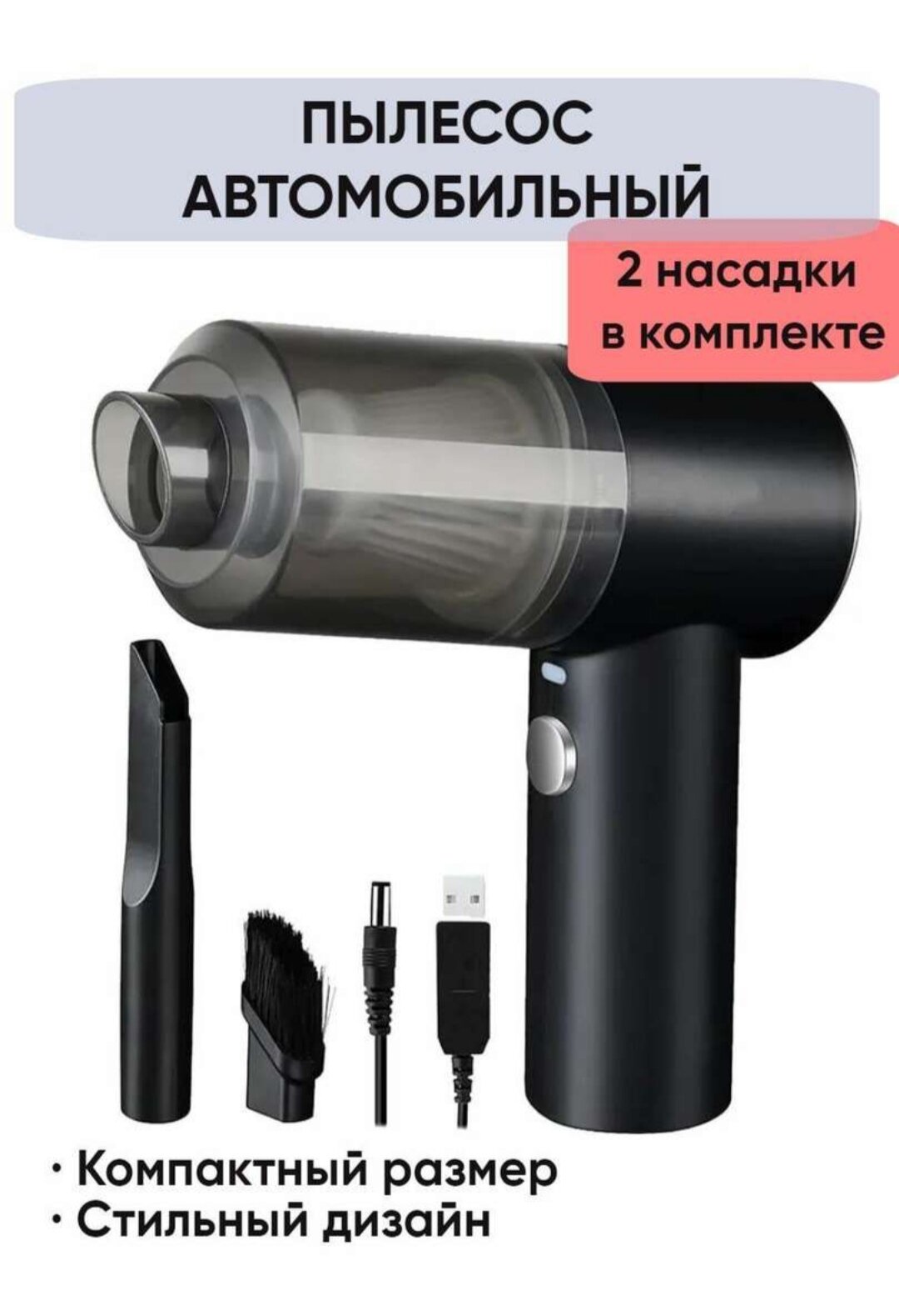 Автомобильный пылесос, беспроводной пылесос для машины Портативный и дома, USB питание, 2 насадки 29739 интересное: