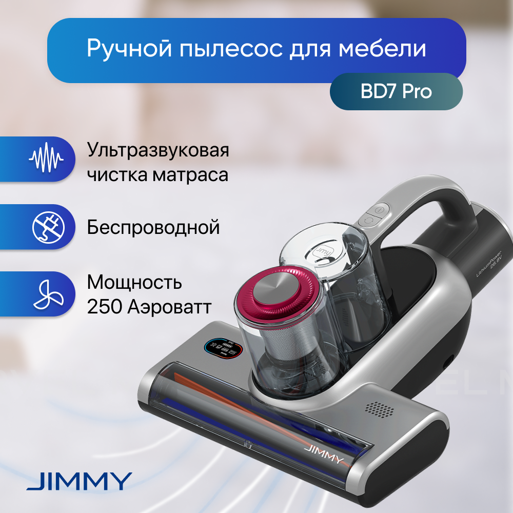 Ручной беспроводной пылесос для мебели и удаления клещей(антиклещевой) Jimmy BD7 Pro, серый интересное: