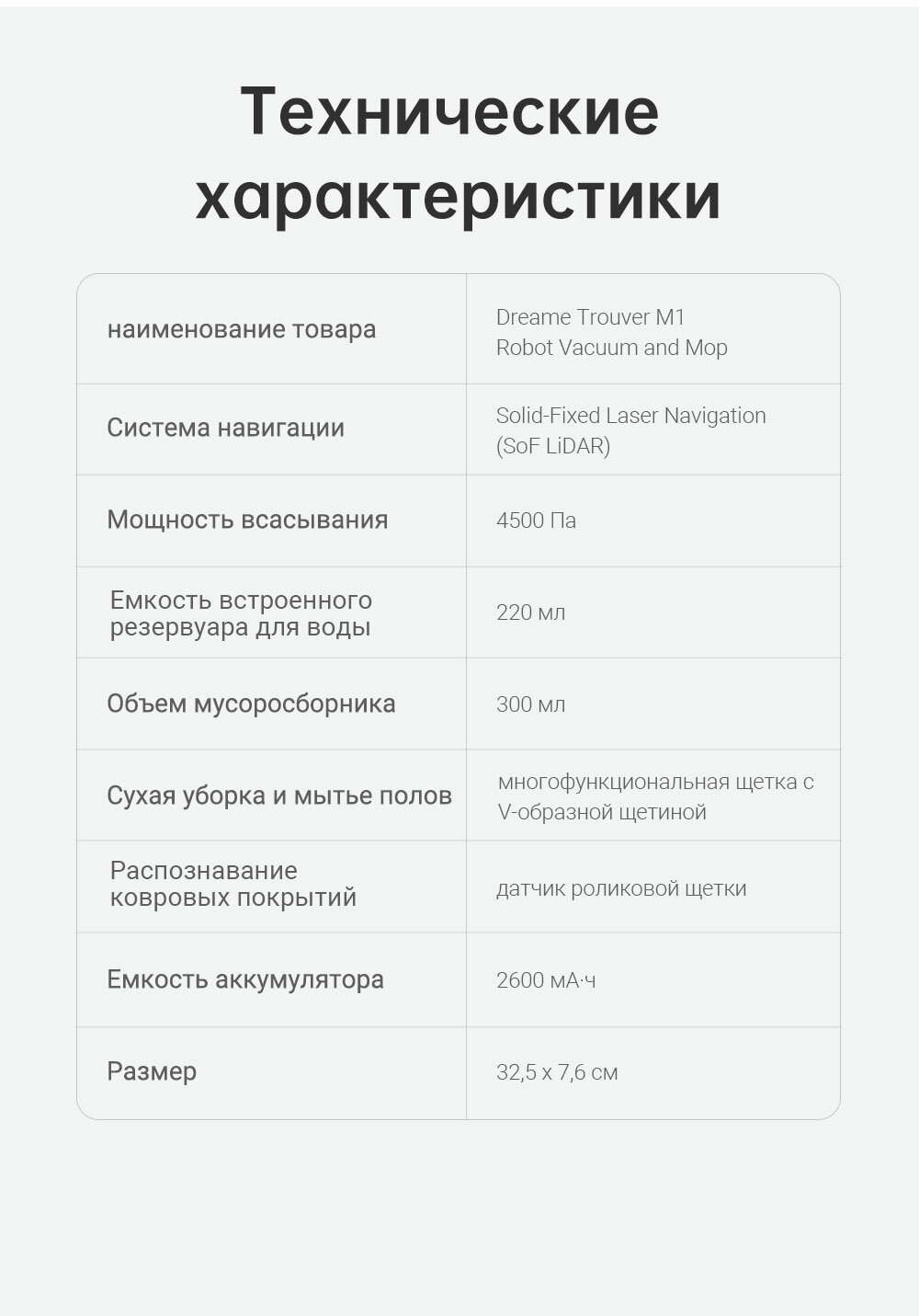 Робот-пылесос Dreame Trouver M1, белый, Русская версия интересное: