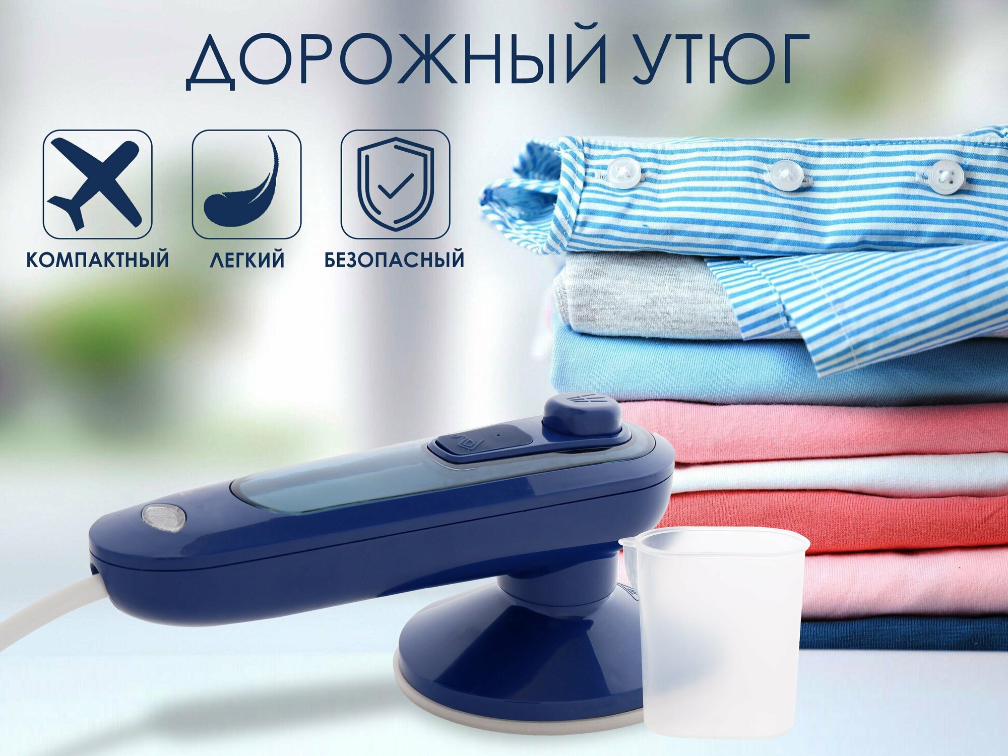 Дорожный утюг ручной /SK-3070/с водяным распылителем/для различных тканей/современный дизайн/синий интересное: