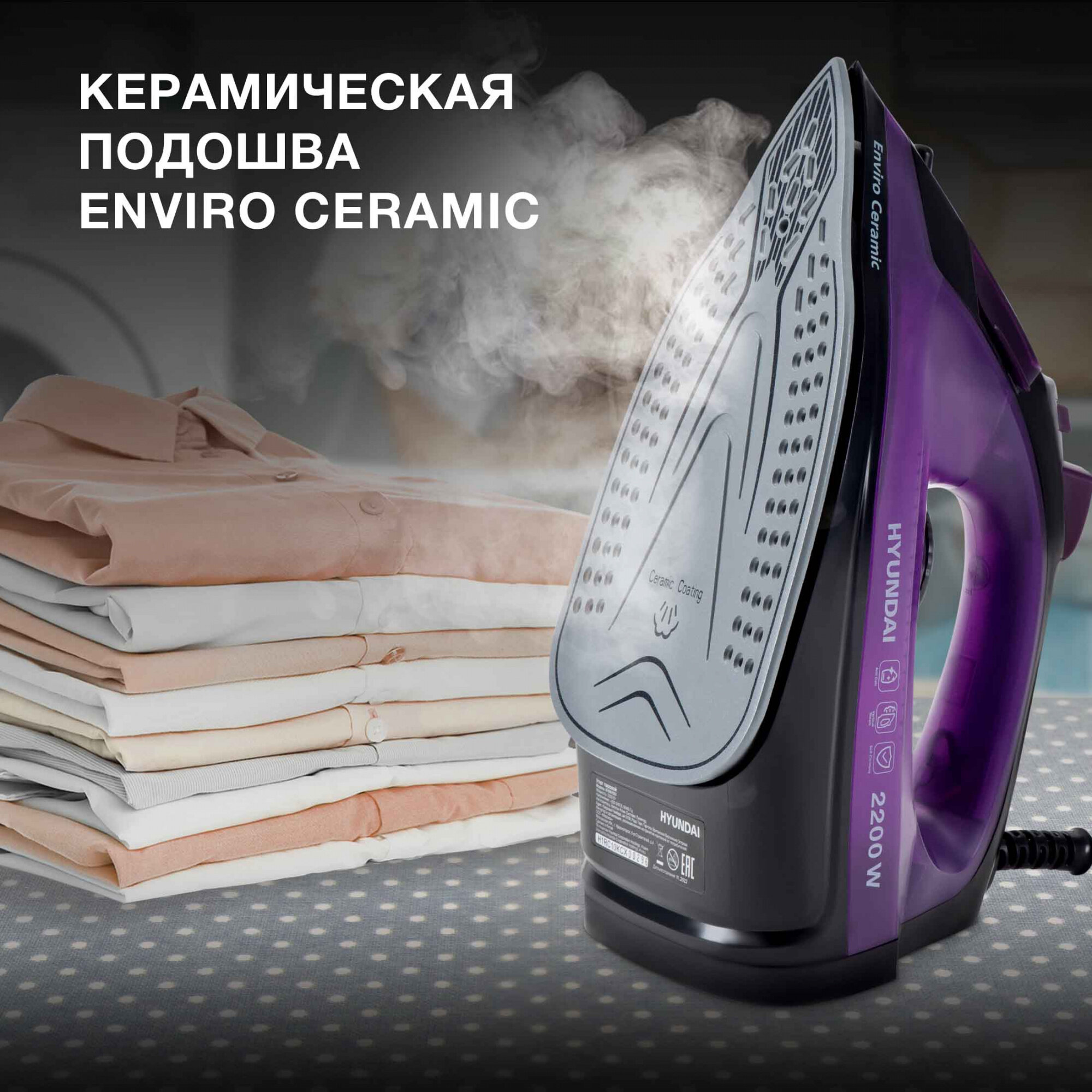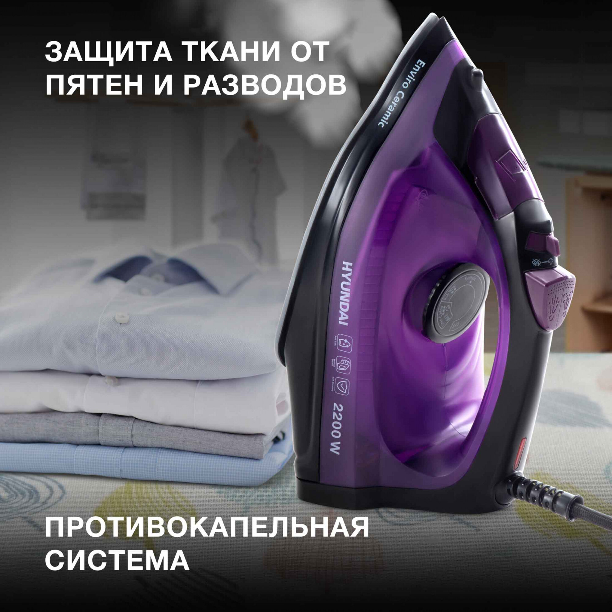 Утюг Hyundai H-SI01551 2200Вт чёрный сиреневый интересное: