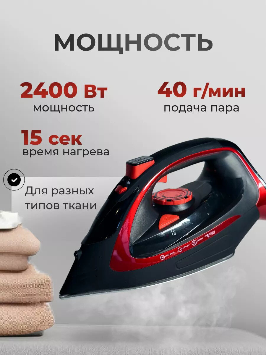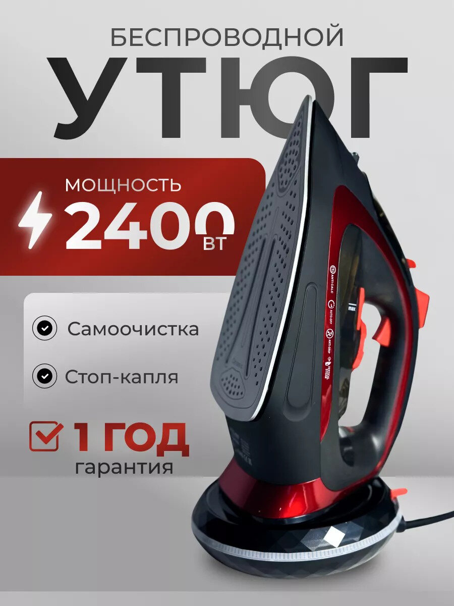 Утюг беспроводной, с функцией вертикальной глажки, паровой удар,домашний,антипригарное покрытие, система самоочистки,2400Вт, красный интересное: