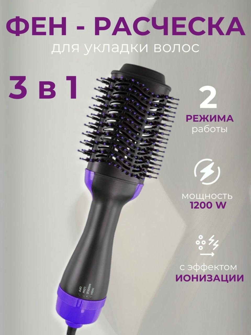 Фен расческа для укладки 3 в 1 фиолетовый интересное: