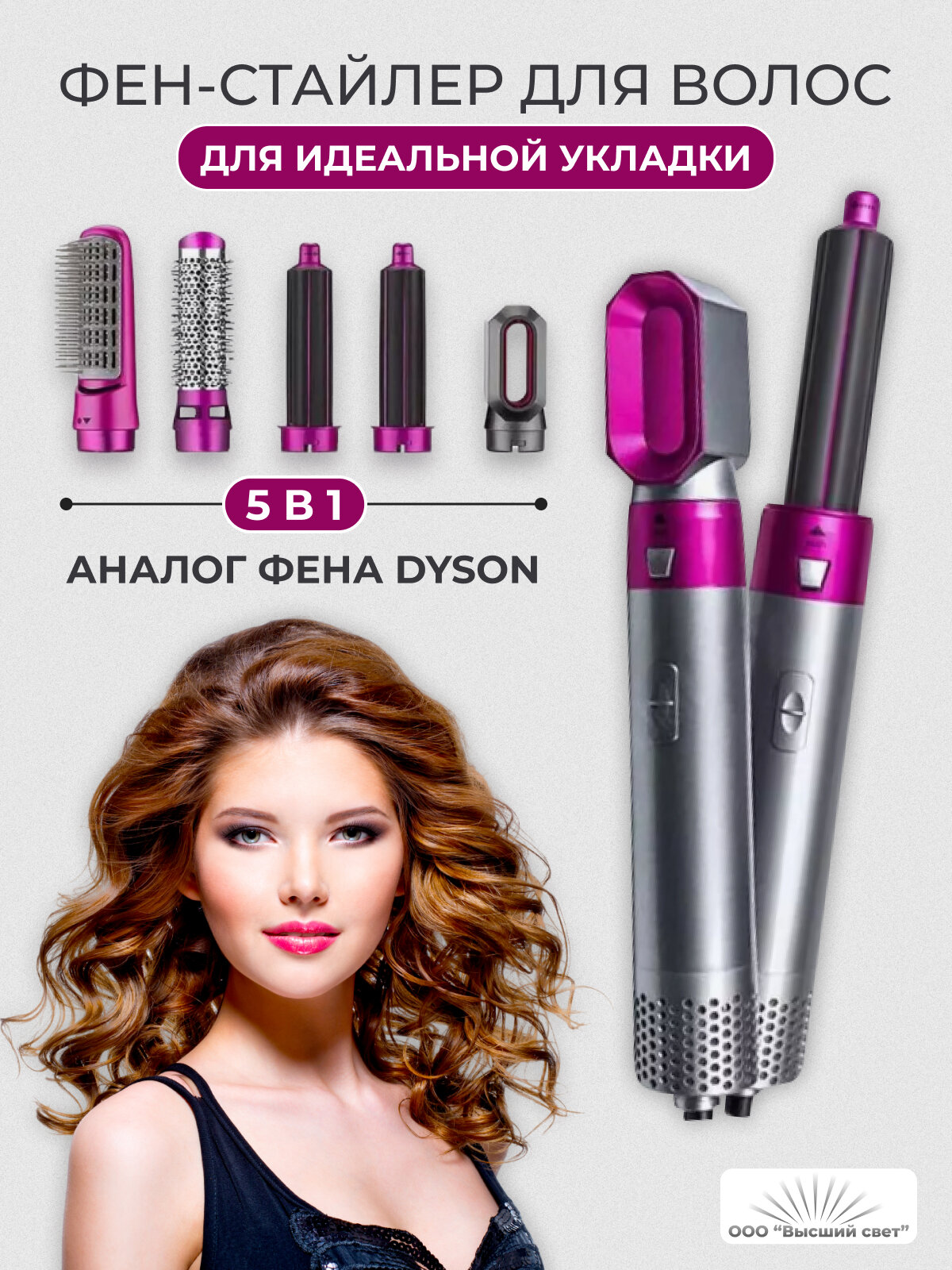 Фен щетка Мультистайлер для укладки 5 в 1 с насадками интересное: