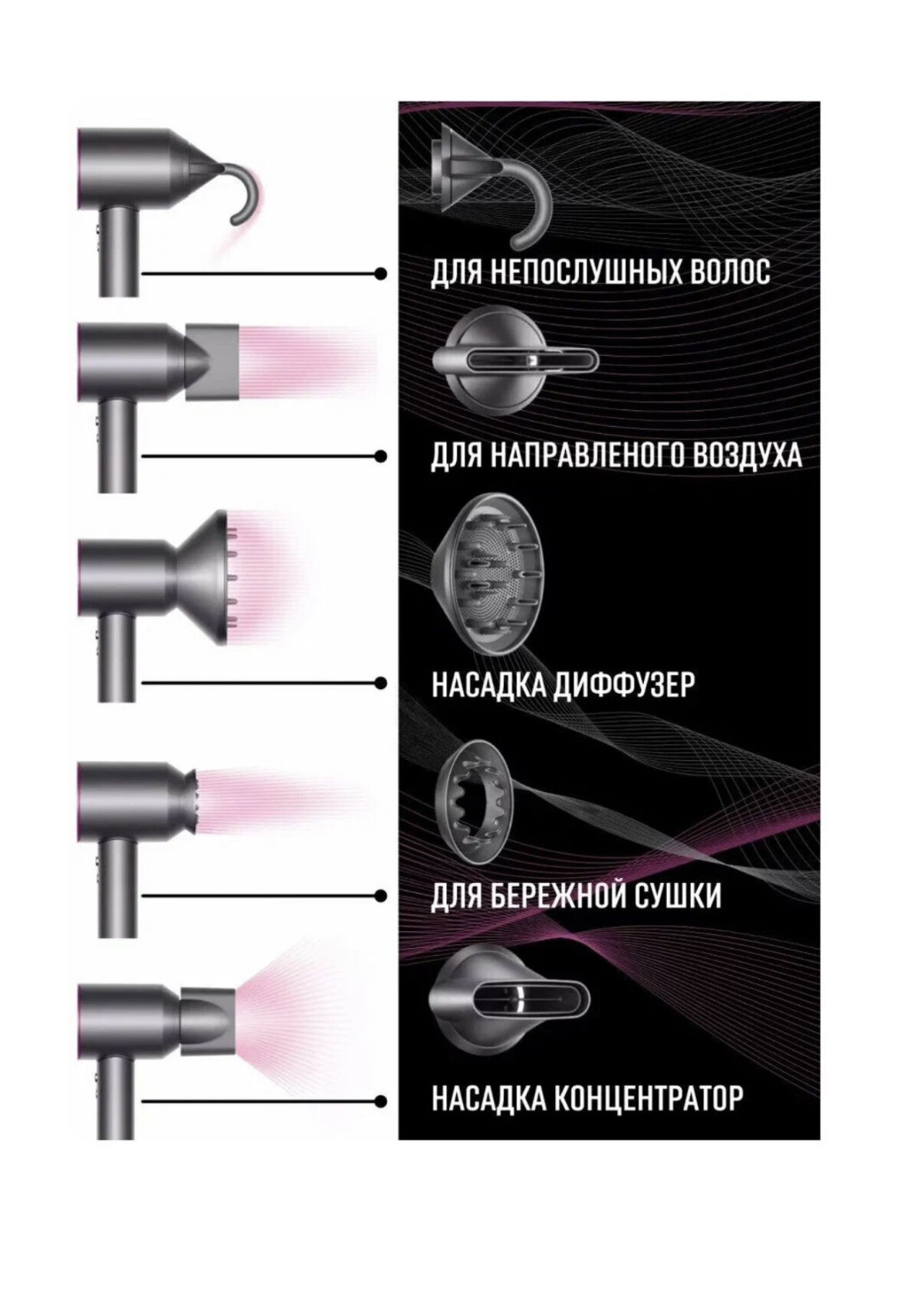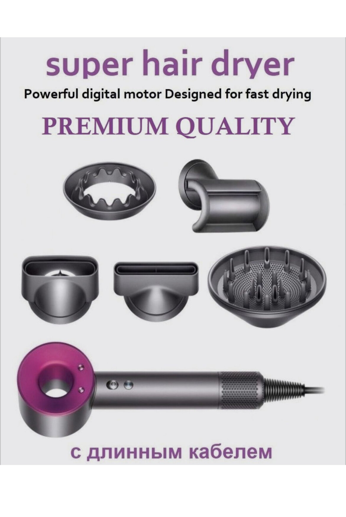 Профессиональный фен для волос Super Hair Dryer 2200 Вт, 3 режима, 5 магнитных насадок, ионизация воздуха ,розовый интересное: