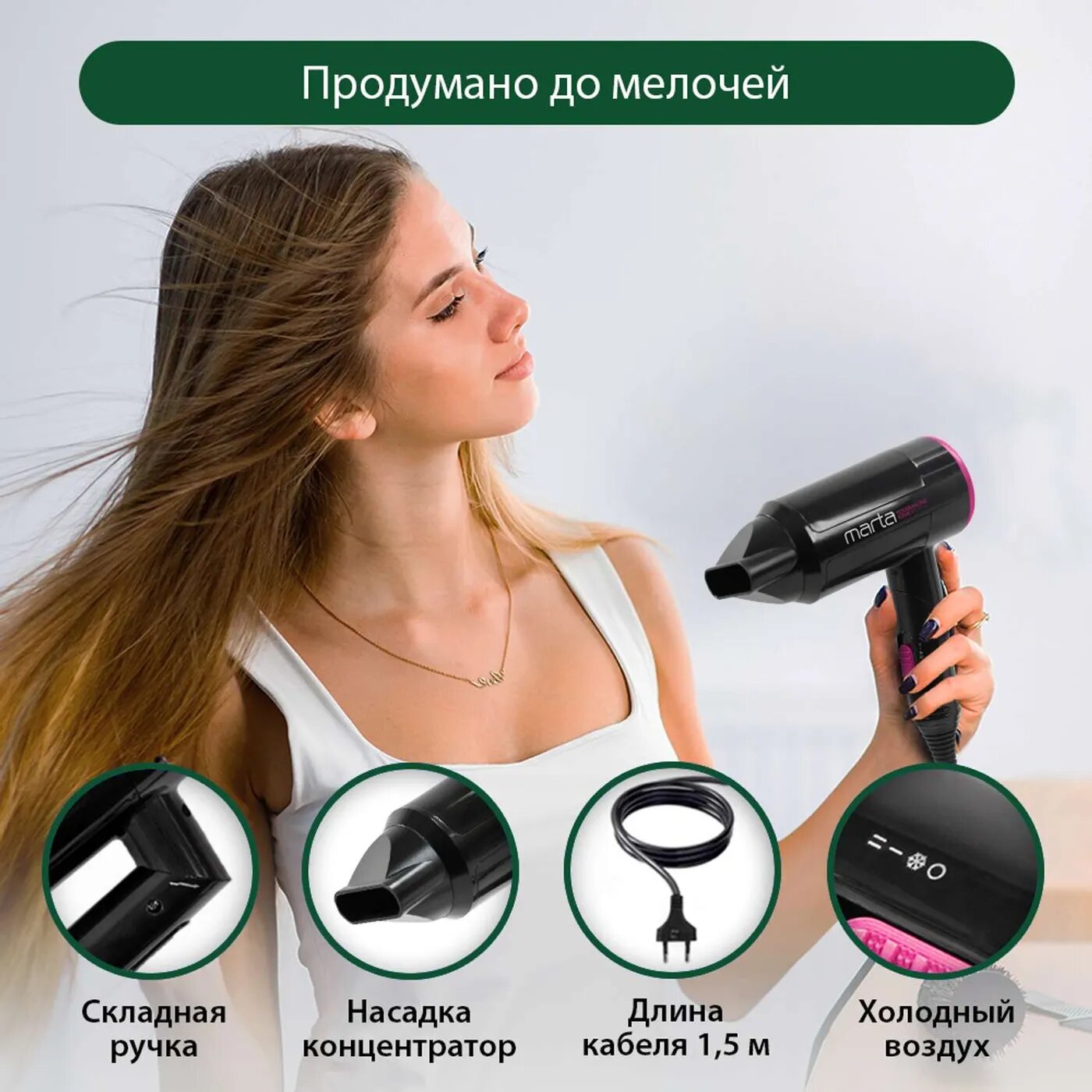 Купить Фен MARTA MT-1265 темная фуксия Технология tourmaline ionic