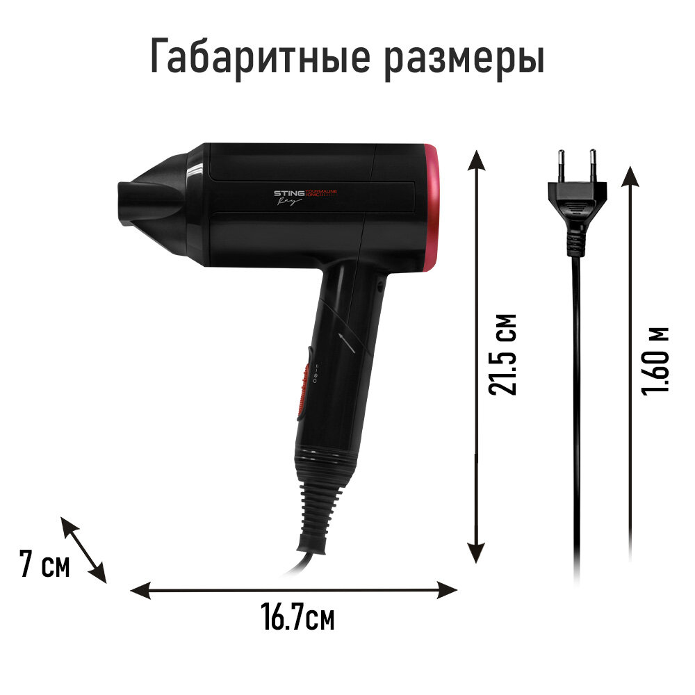 STINGRAY ST-HD800A черный коралл фен интересное: