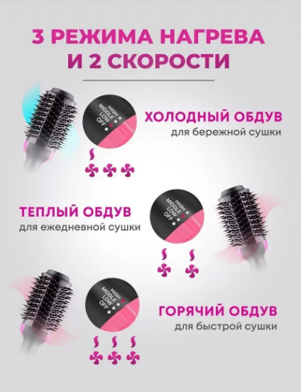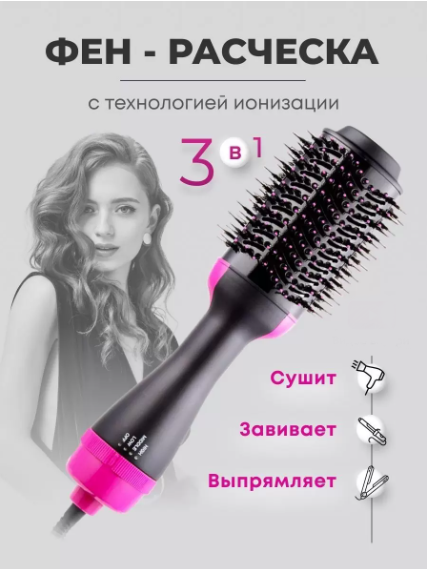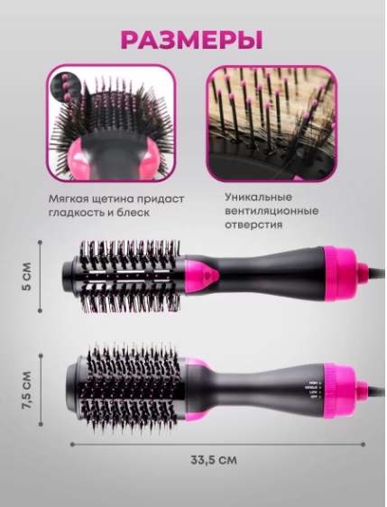 Фен-щетка для волос / Выпрямитель с ионизацией / Брашинг / Термощетка интересное: