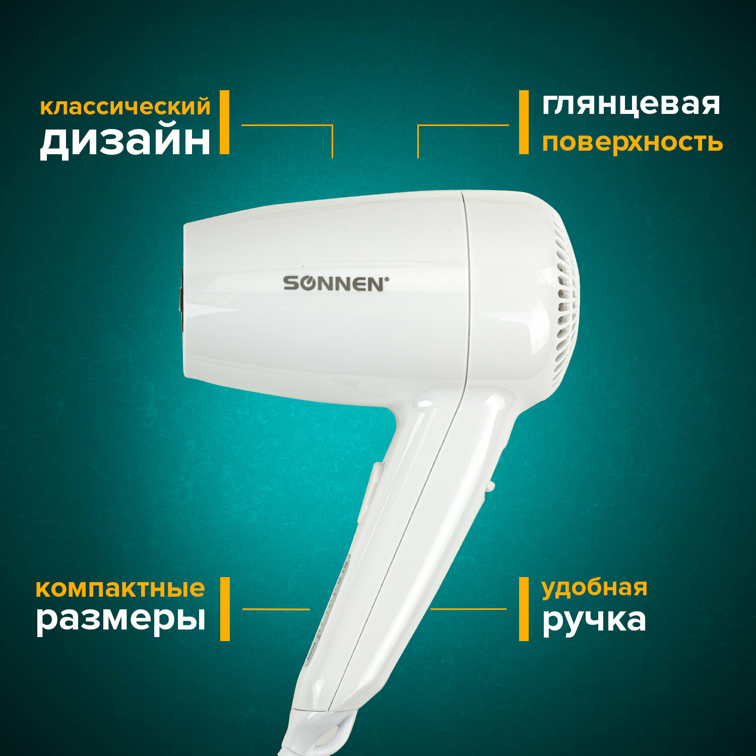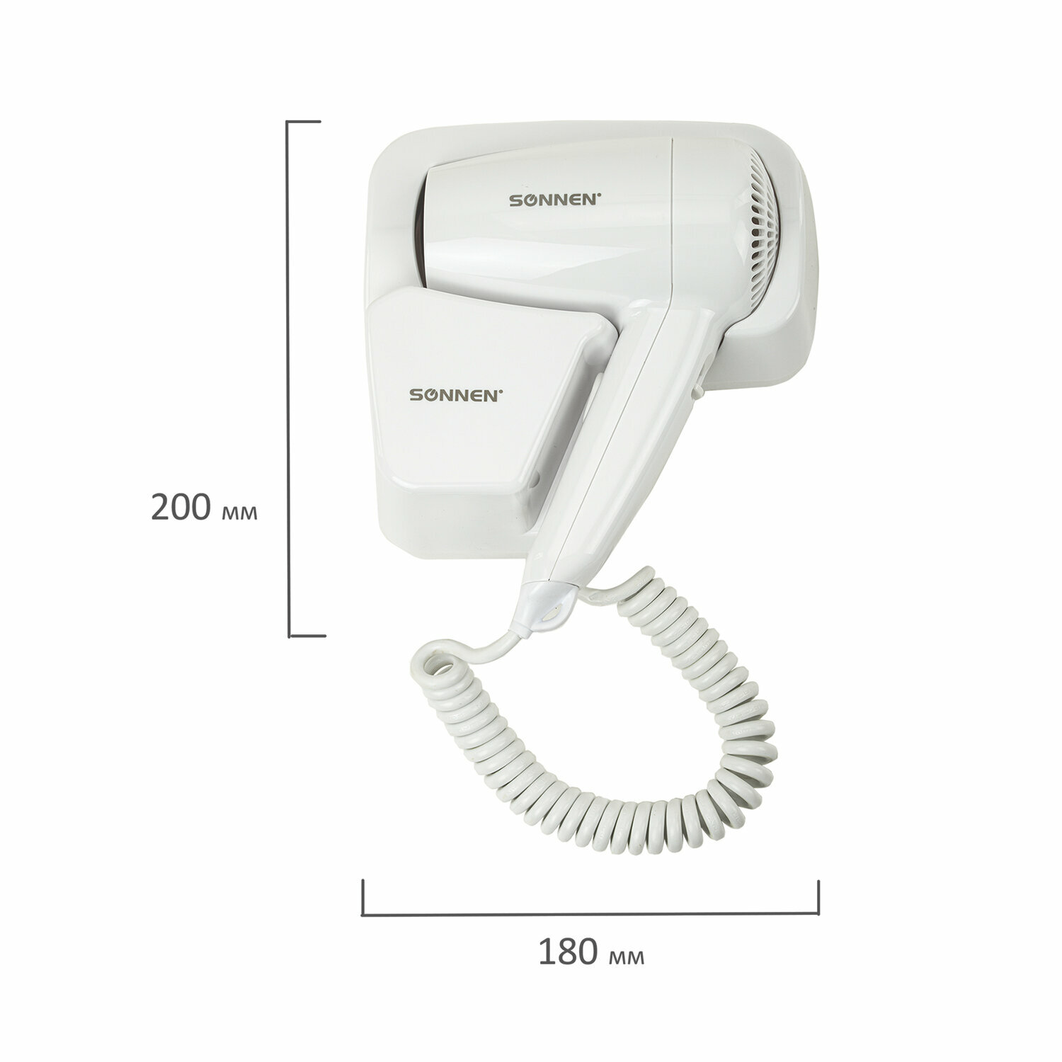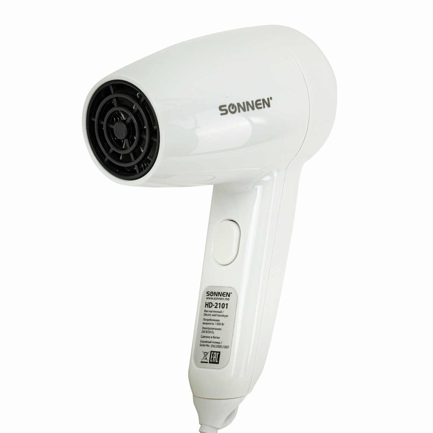 Фен для волос настенный с держателем Sonnen Hd-2101 Ultra Plus 1300 Вт, 2 скорости 1 температурный режим, белый, 608481