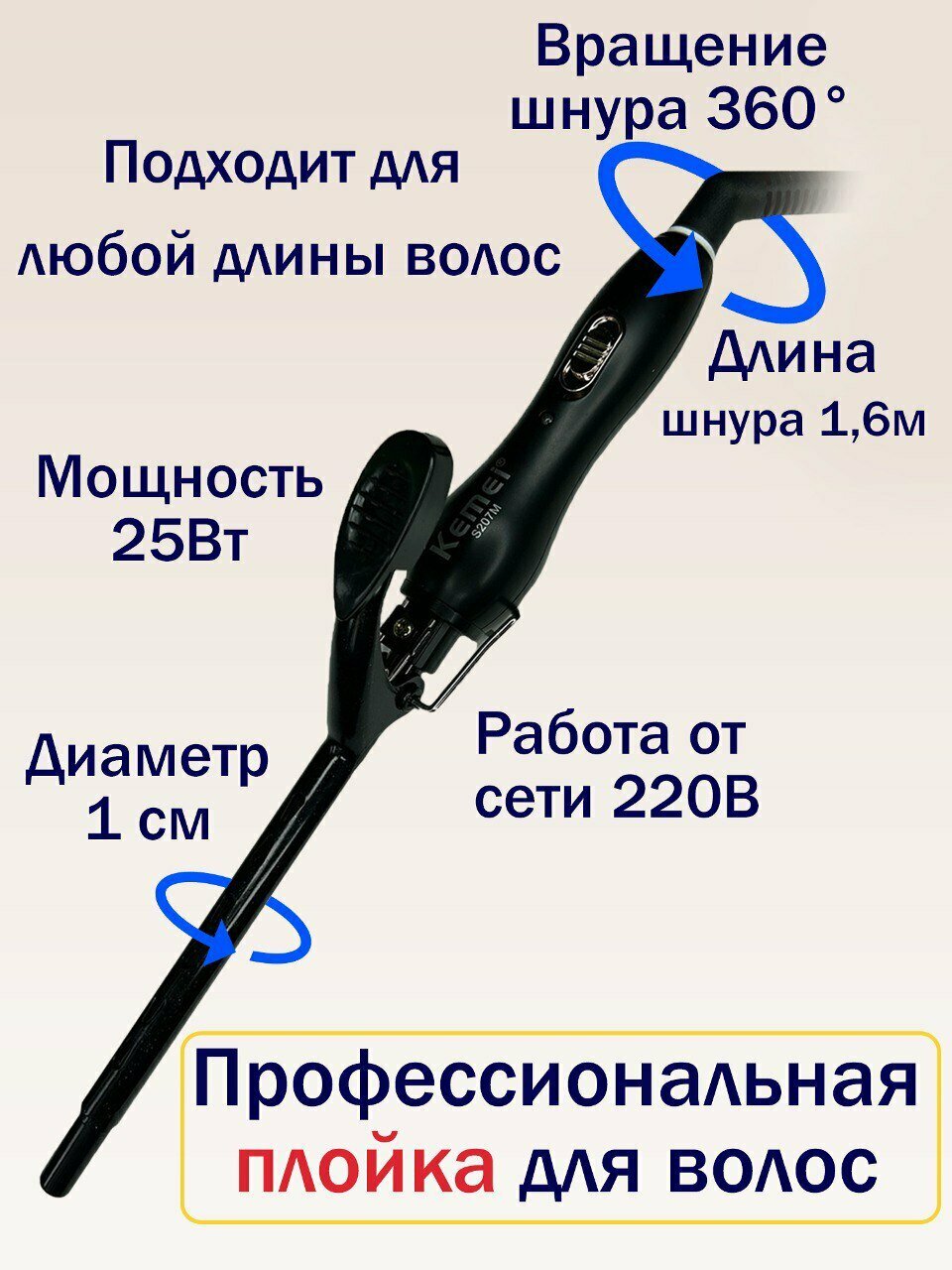 Женские щипцы для укладки и завивки волос 30 Вт, керамическое покрытие, StarWind, черный