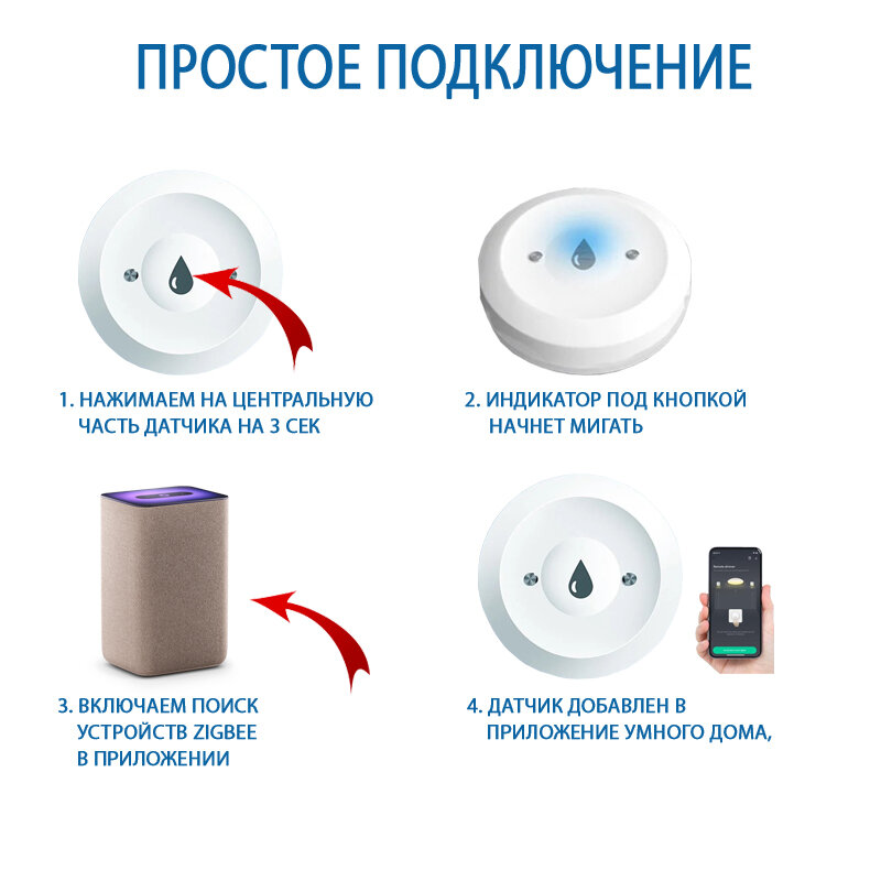 Умный датчик протечки воды Zigbee 3.0, совместим с Яндекс Алисой, Марусей, Салют интересное: