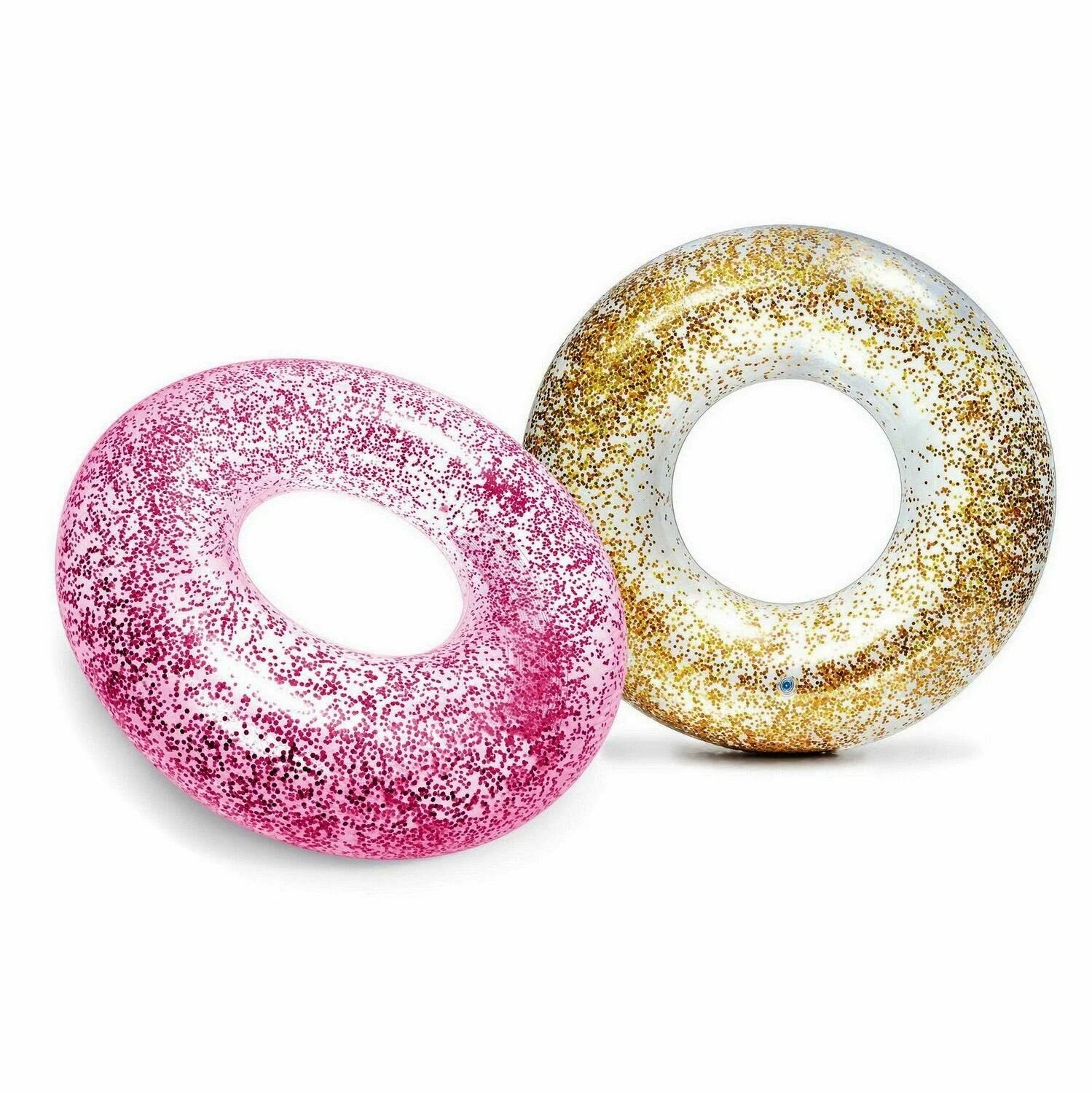 Купить Надувной круг 119 см / круг с блестками , цвет розовый / 9+