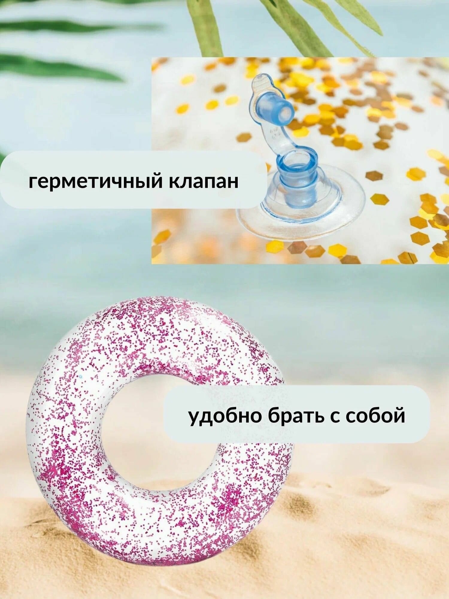Надувной круг 119 см / круг с блестками , цвет розовый / 9+ интересное: