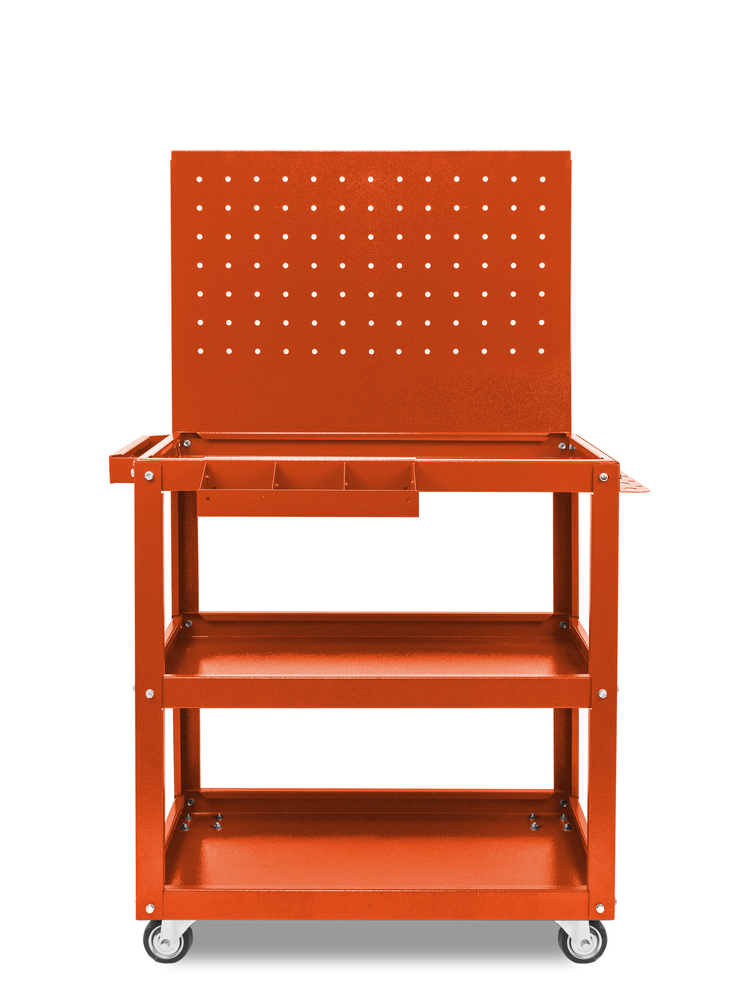 Купить Тележка инструментальная, ящик для инструментов, сталь, 3 секции, оранжевая