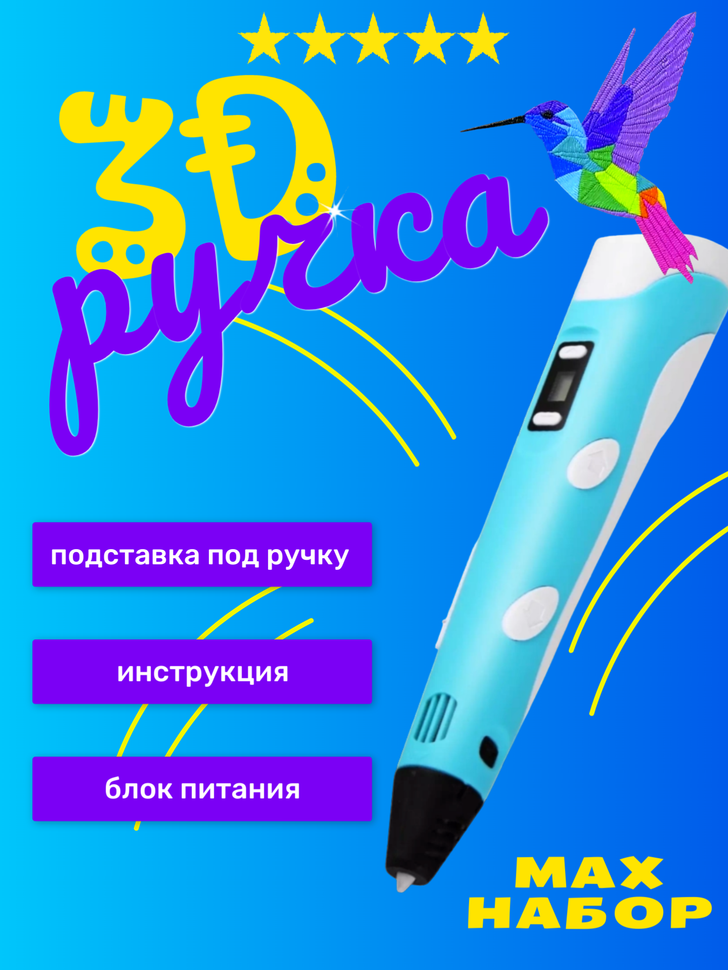 | Комплектация | 3D ручка (ABS пластик стержни , 3d-pen-in) подставка, зарядка, инструкция. |
