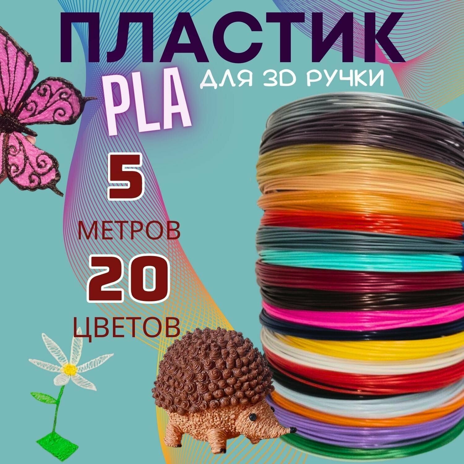 PLA пластик для 3D ручки, "U3Fun". 20 разных цветов, 100 метров в наборе интересное: