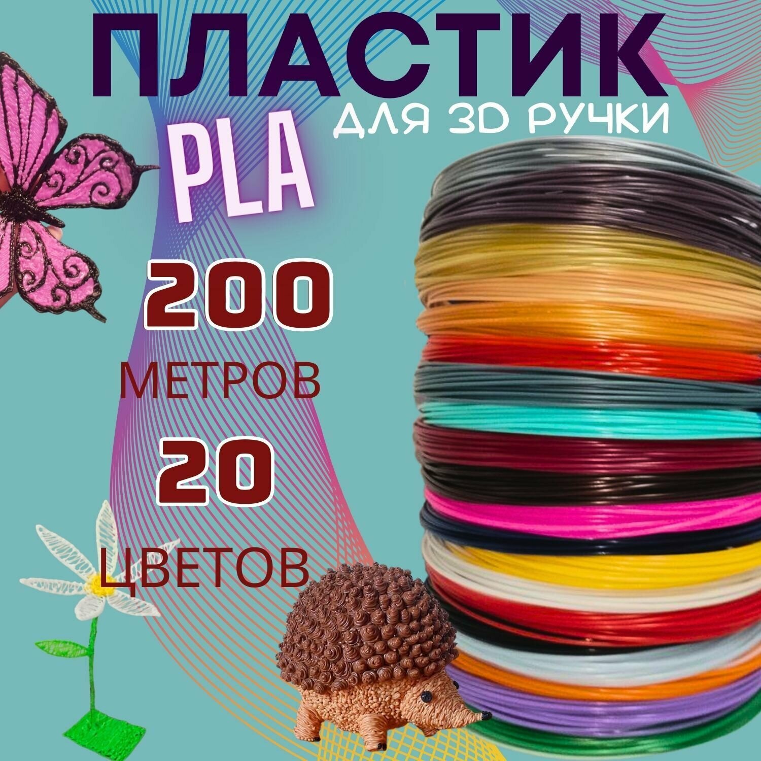 PLA пластик для 3D ручки, "U3Fun". 20 разных цветов, 200 метров в наборе интересное: