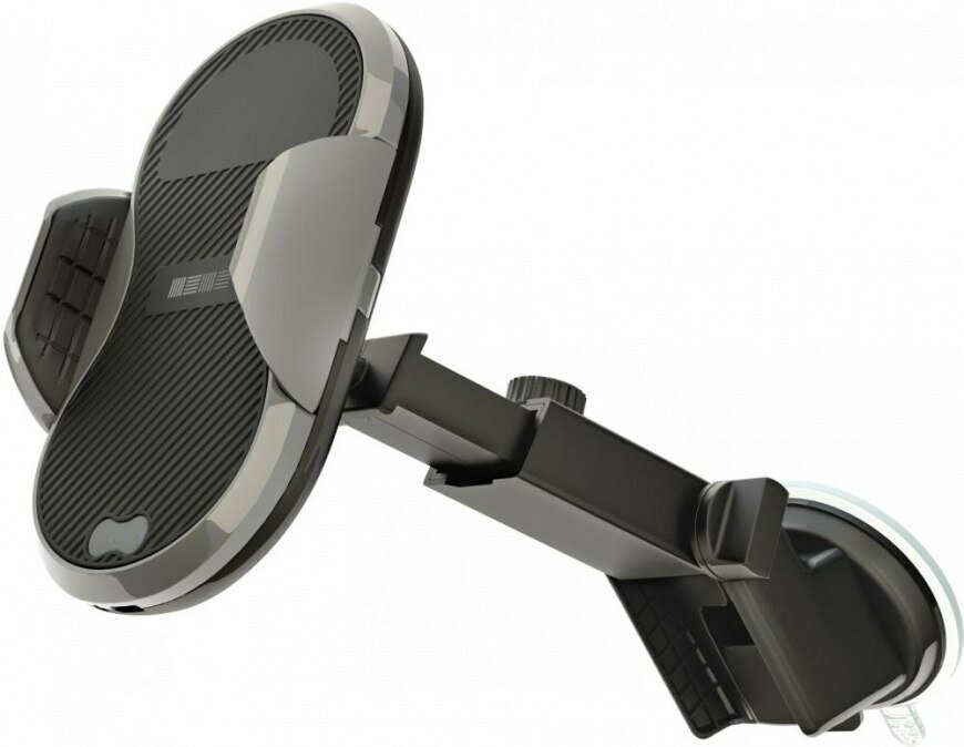 | Плюсы: | Беспроводная зарядка (для iPhone X достаточно что бы не разряжаться при работающем навигаторе), автоматическая система фиксации телефона, много регулировок и неплохая присоска. |