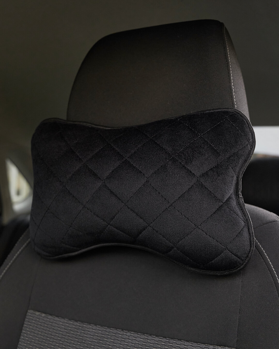 Автомобильная подушка на подголовник 1 штука из велюра с черной строчкой интересное: