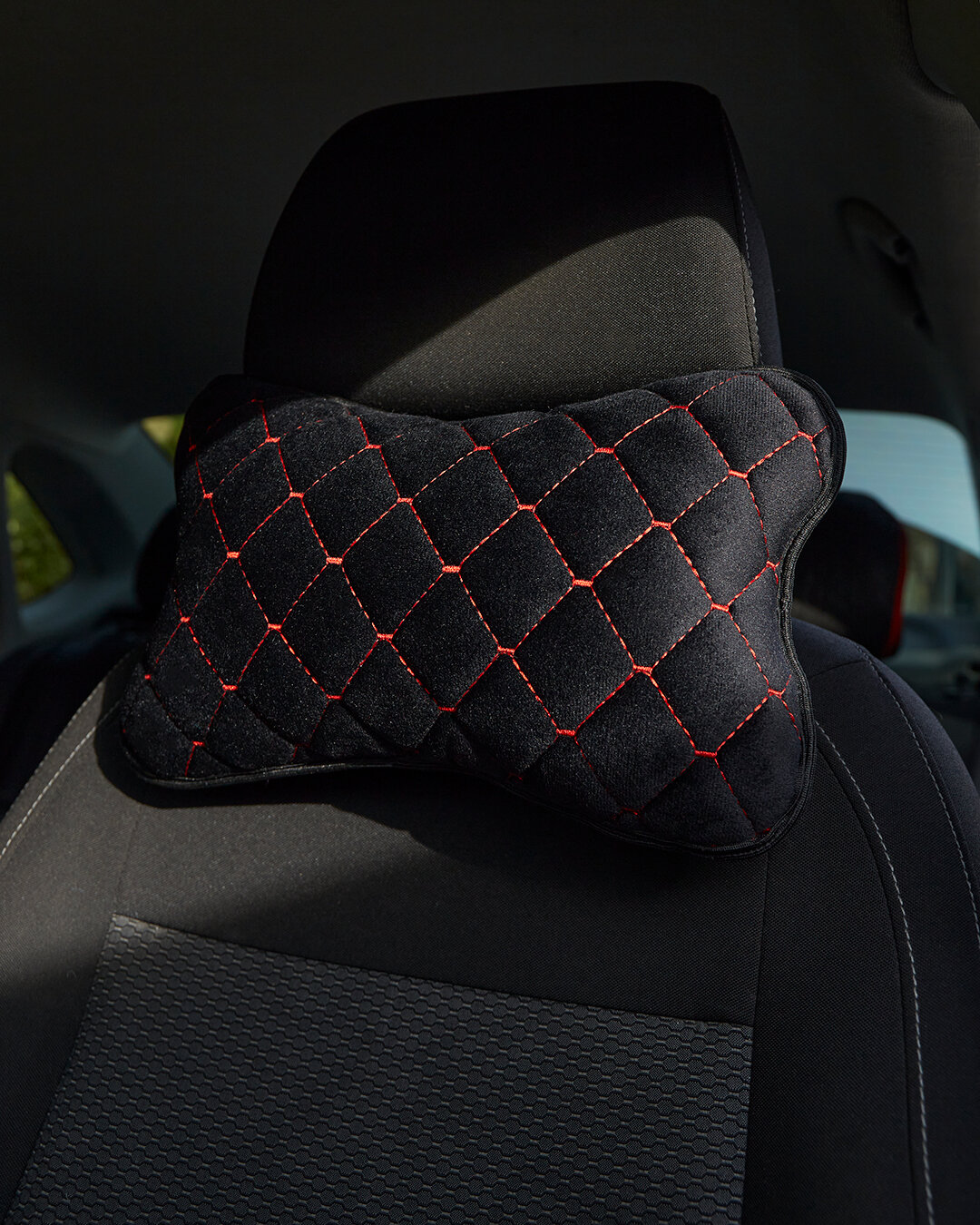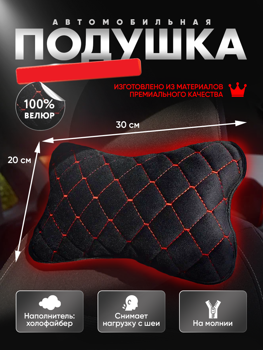 Автомобильная подушка на подголовник 1 штука из велюра с красной строчкой интересное: