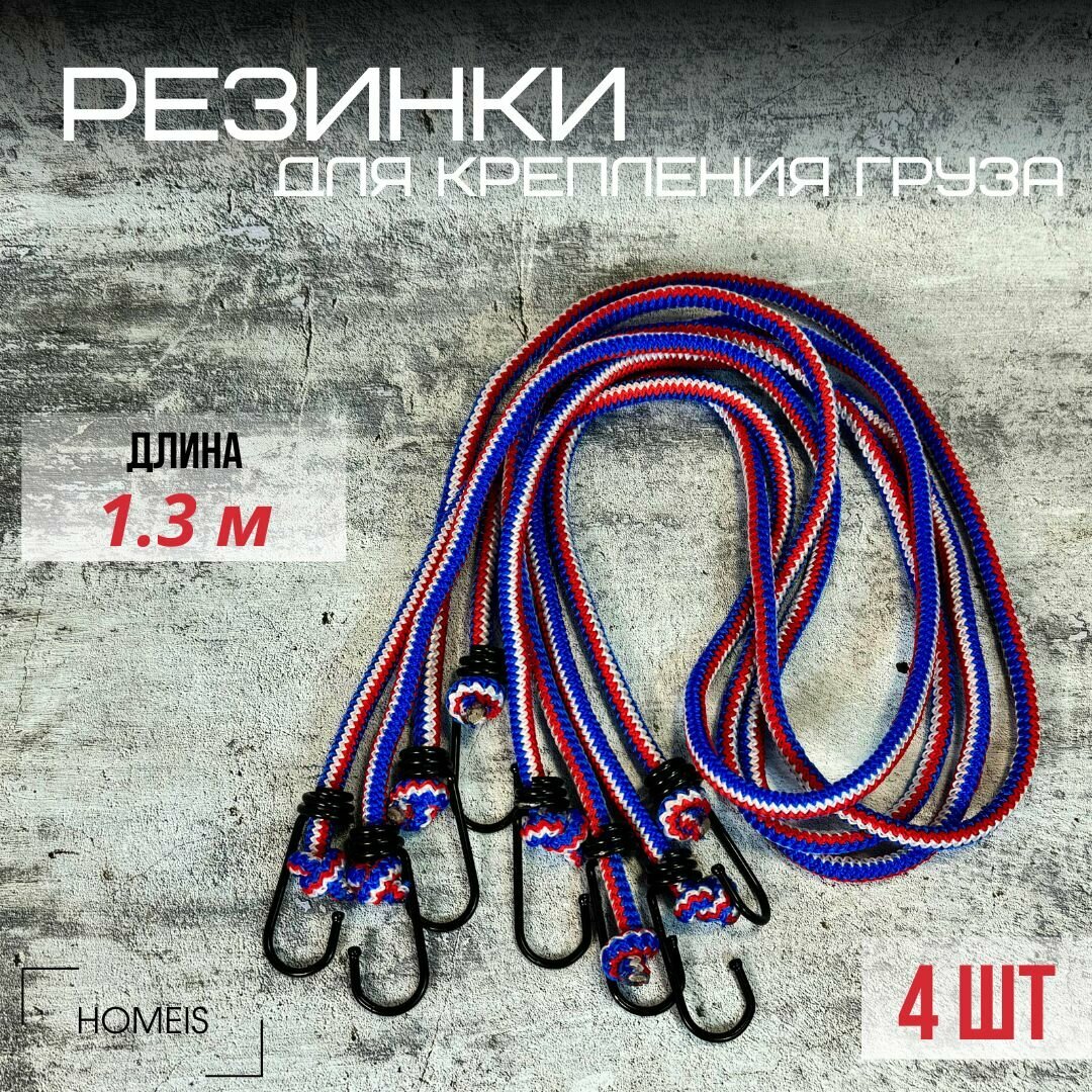 Купить Резинка крепления груза 1.3м х 8мм - 4 шт / Ремень эластичный для крепления багажа с металлическими крюками