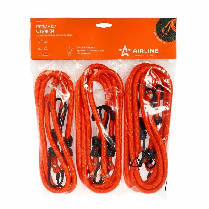 Купить AIRLINE Стяжка крепления груза (резинки) (D-8мм) (6шт.металлич.крюч) Airline (AS-R-04)