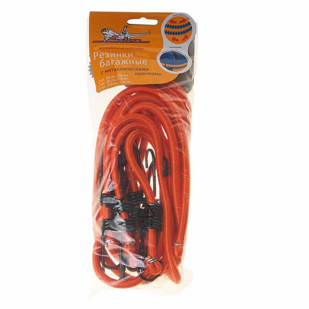 Набор Резинок Для Крепления Груза 2 Шт. D 8 Мм .X60 См., 2 Шт D 8 Мм .X80 См., 2 Шт. D 8 Мм .X100 См. 6 Шт. Airline As-R-04 A...