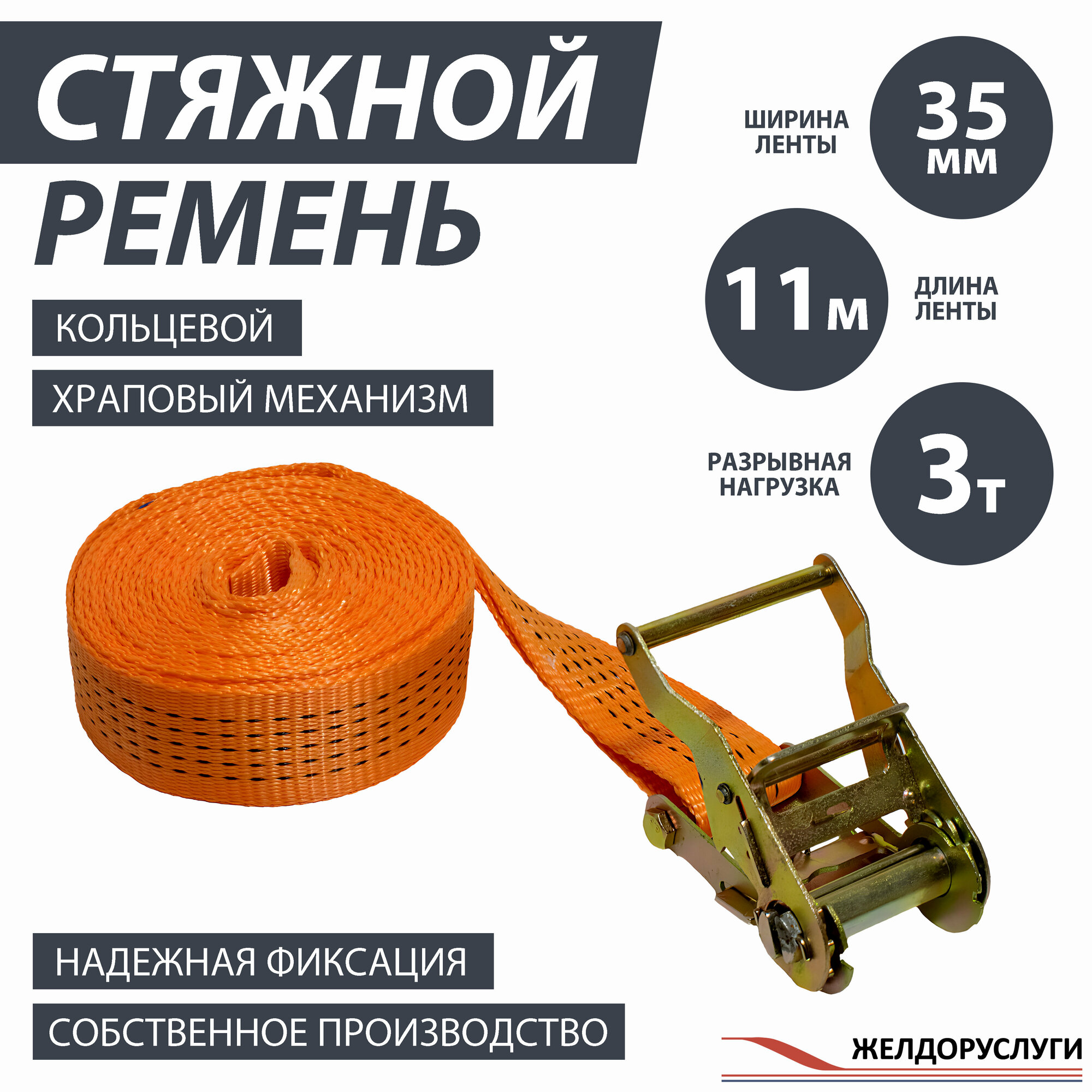 | Подробная комплектация | Стяжной ремень 35 мм с храповым механизмом 1500 dan кольцевой |