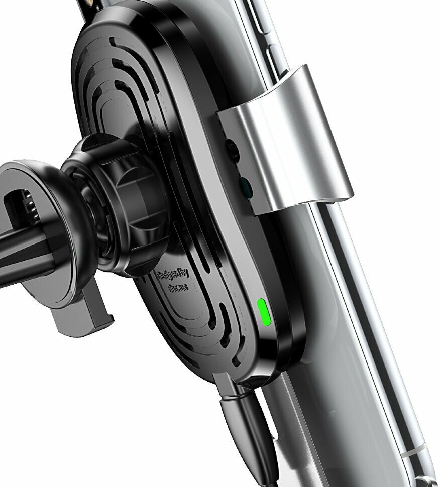 | Плюсы: | Надёжно крепится в вентиляции, надёжно держит смартфон, беспроводная зарядка работает. |