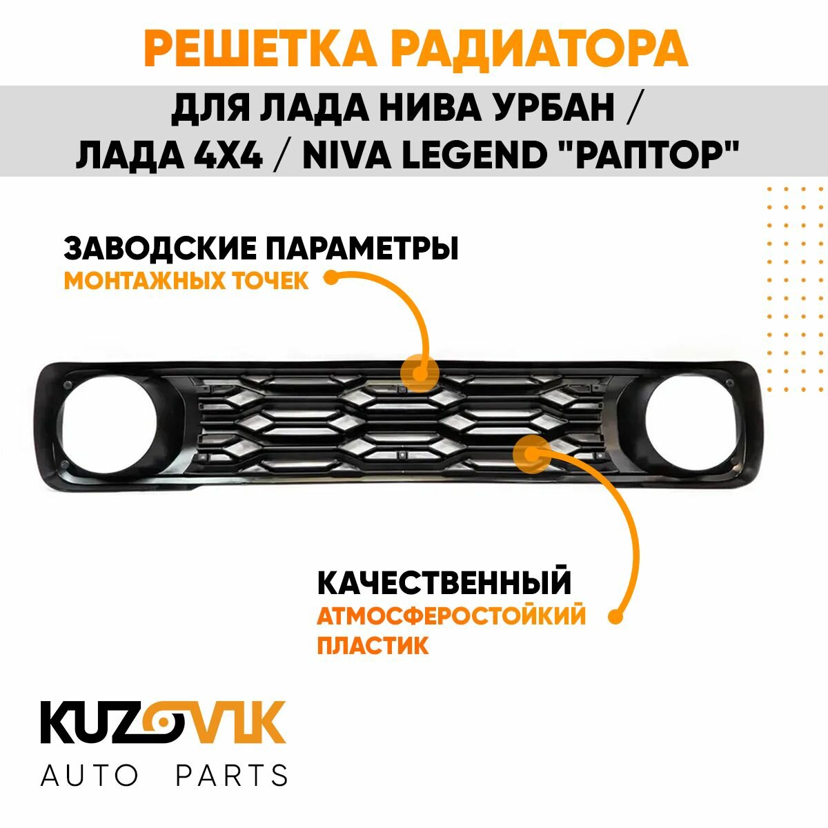 Решетка радиатора для Лада Нива Урбан / Лада 4х4 / Niva Legend "Раптор" черная, плетение интересное: