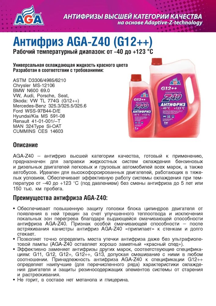 СохранитьАнтифриз, AGA, AGA002Z, красный, (-40/+120), готовый, 5 л. интересное: