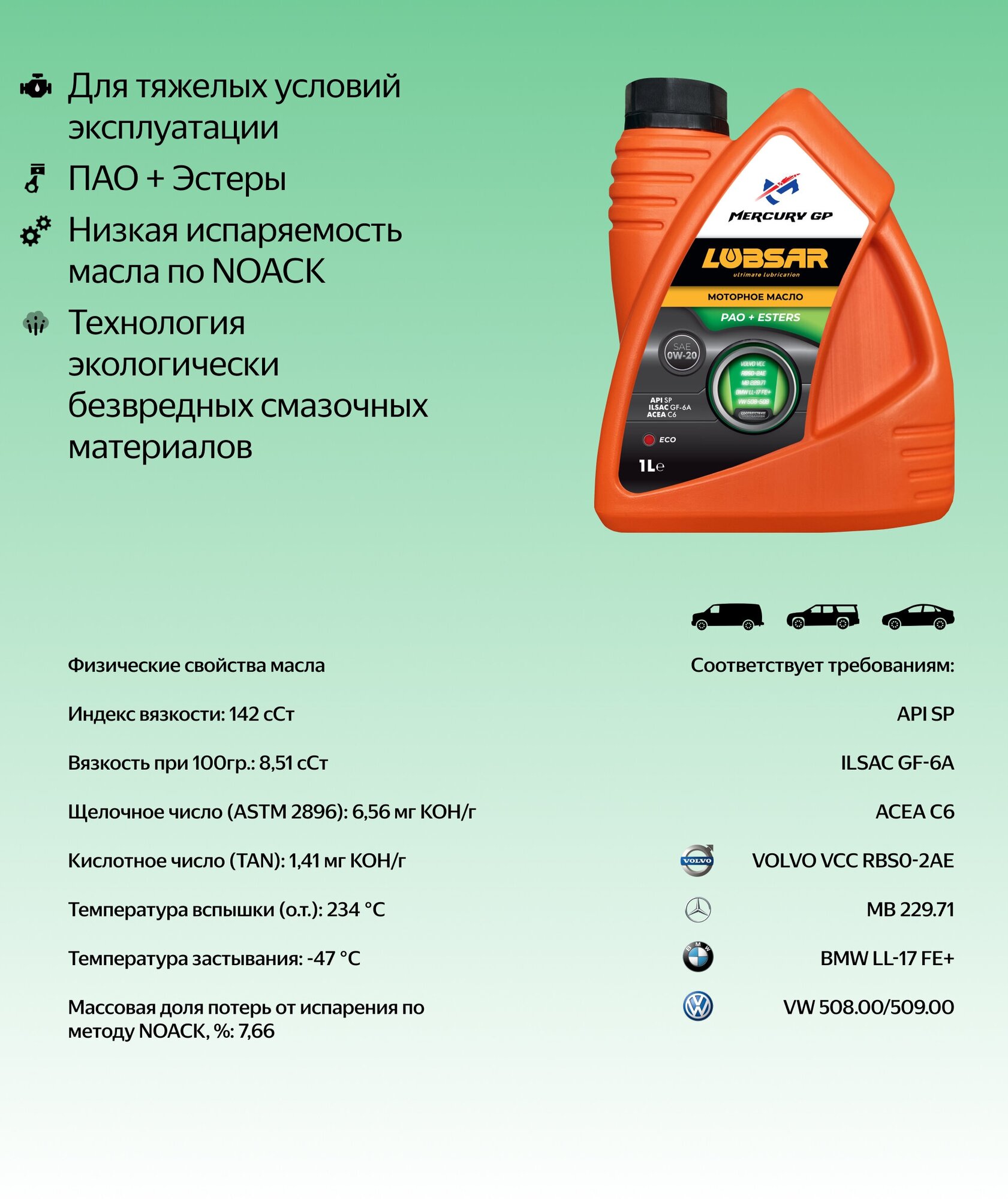 Моторное масло MERCURY GP LUBSAR ECO 0W-20 EST 1 л. интересное: