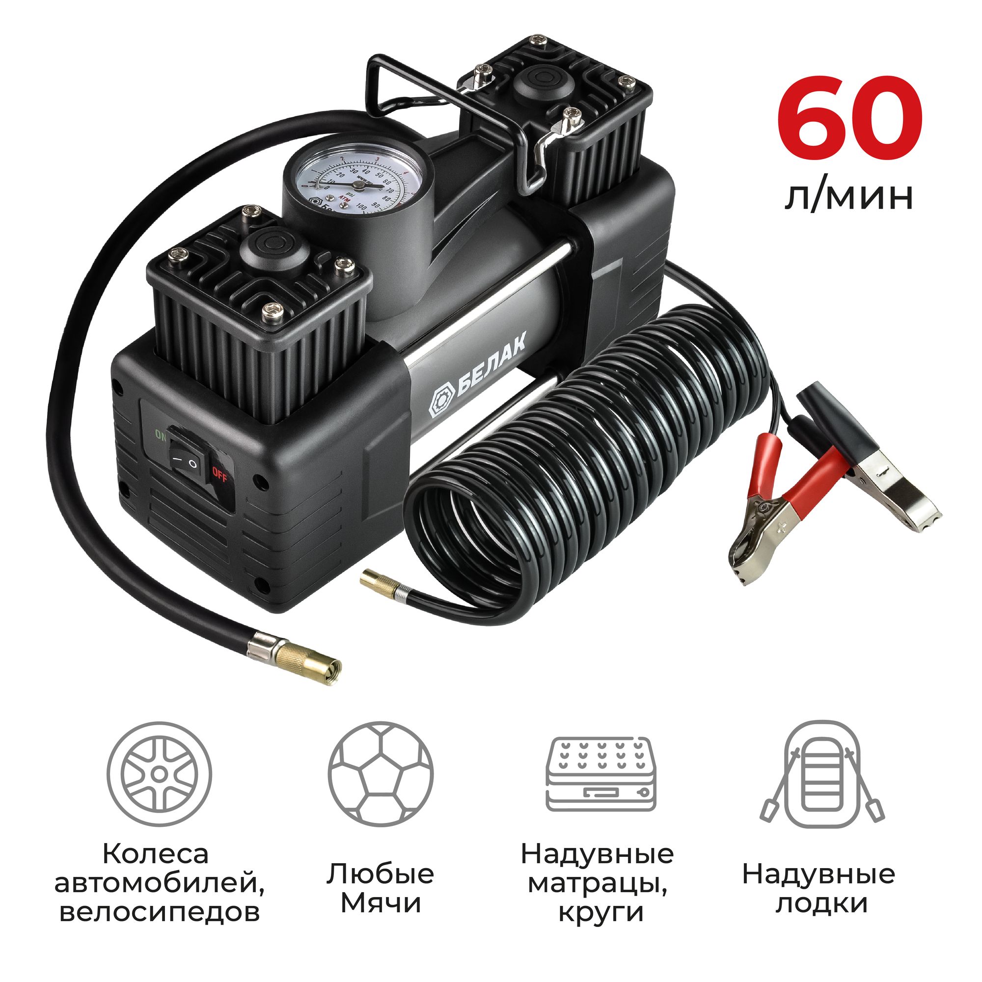 Компрессор насос автомобильный двухпоршневой БелАК "Мистраль - 75МК" 75л/мин БАК.99173 интересное: